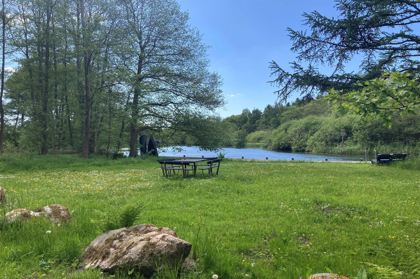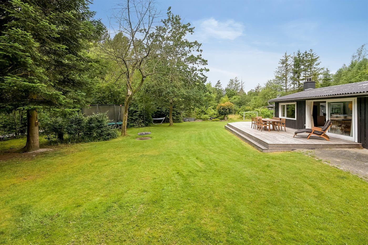 Ferieboligen er beliggende på en 2830 m² stor naturgrund. Der er 2900 m til havet. Der er en sø i en afstand af 400 m. Der er en badebro i nærheden. Nærmeste forretning er beliggende i en afstand af 2500 m. Til ferieboligen hører åbent terrasseareal. Desuden er der overdækket terrasse. Der er redskabsrum. Gynge. Trampolin. Fodboldmål. Bålsted. Der er mulighed for at tilberede maden udendørs i udekøkkenet. Grill til rådighed. Der er carport til rådighed. Parkering ved ferieboligen.