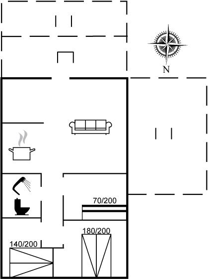 Der er i alt 3 soveværelser. Sovepladserne fordeler sig på: 4 sovepladser i dobbeltsenge. 2 sovepladser i køjeseng.