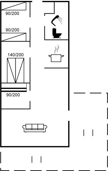 Der er i alt 3 soveværelser. Sovepladserne fordeler sig på: 2 sovepladser i dobbeltseng. 2 sovepladser i enkeltsenge. 2 sovepladser i køjeseng. Derudover er der 1 stk. barneseng.