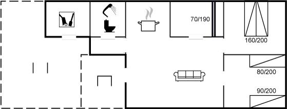 Der er i alt 3 soveværelser. Sovepladserne fordeler sig på: 2 sovepladser i dobbeltseng. 2 sovepladser i enkeltsenge. 2 sovepladser i køjeseng.