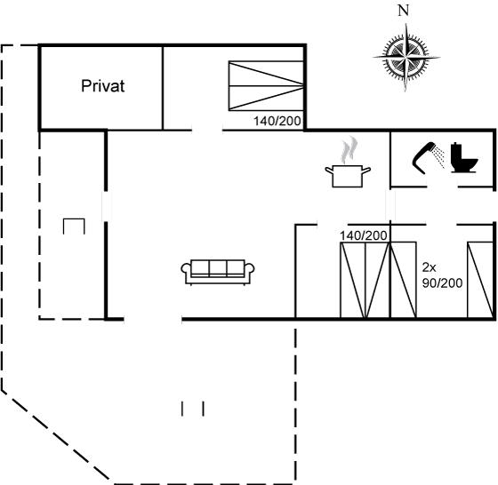 Der er i alt 3 soveværelser. Sovepladserne fordeler sig på: 4 sovepladser i dobbeltsenge. 2 sovepladser i enkeltsenge.