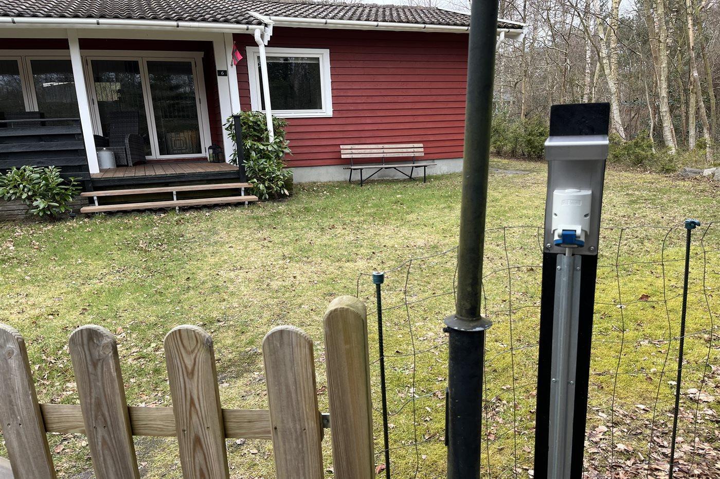 Ferieboligen er beliggende på en 1217 m² stor naturgrund. Grunden er indhegnet. Der er 700 m til havet. Nærmeste forretning er beliggende i en afstand af 3500 m. Der er en golfbane i en afstand af 3800 m. Til ferieboligen hører åbent terrasseareal. Desuden er der overdækket terrasse. Grill til rådighed. Der er installeret stik til opladning af elbil. CEE stik. Med 3 kW ladeeffekt. Parkering ved ferieboligen.