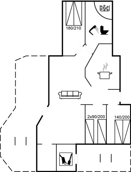 Der er i alt 3 soveværelser. Sovepladserne fordeler sig på: 4 sovepladser i dobbeltsenge. 2 sovepladser i enkeltsenge.