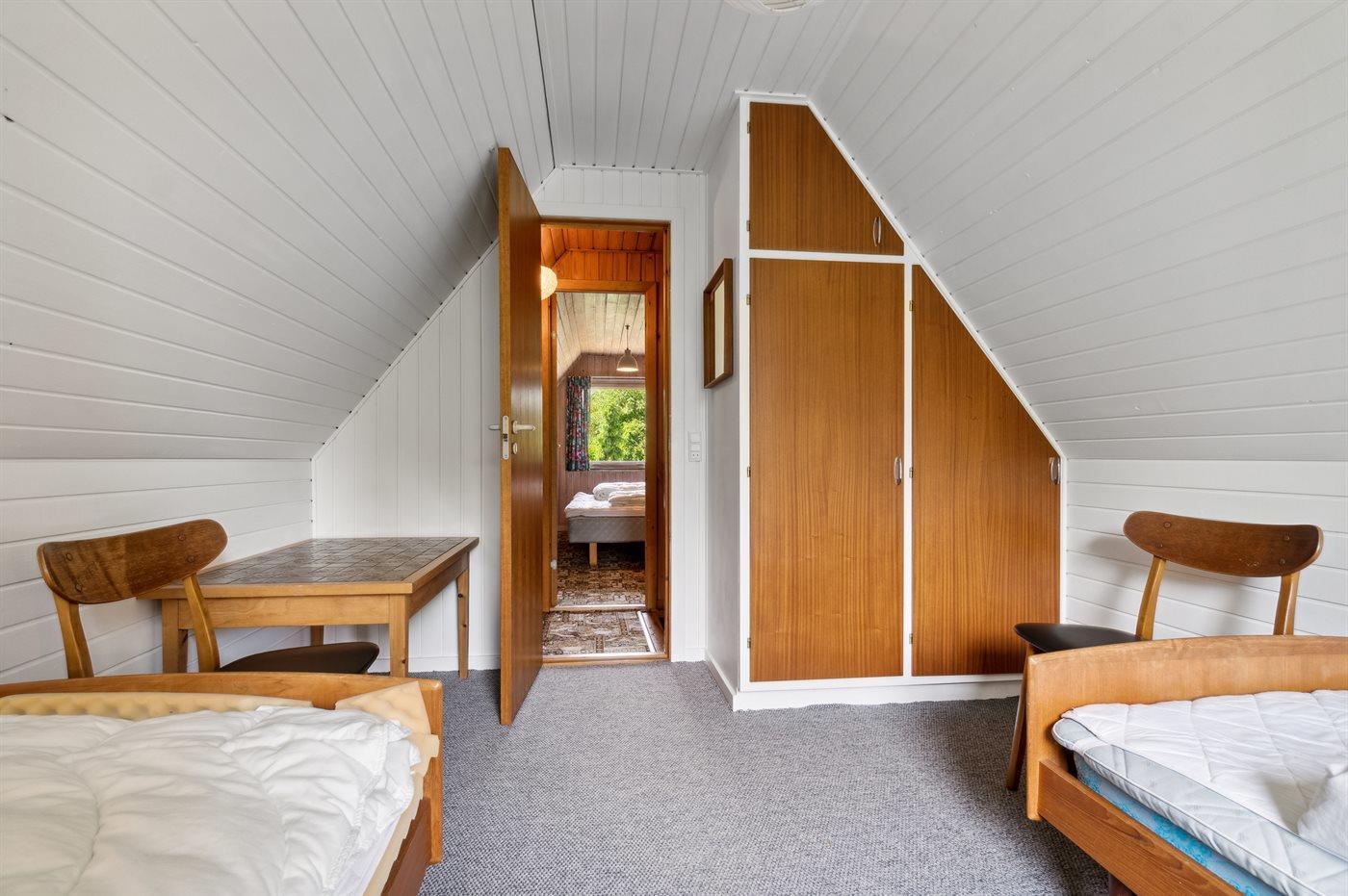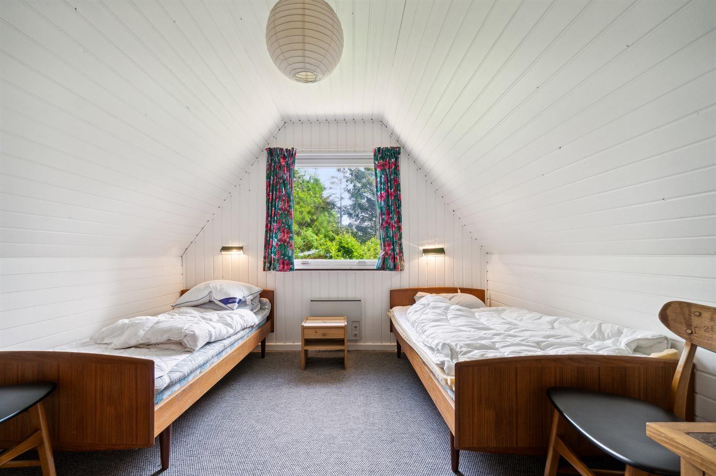 Der er i alt 3 soveværelser. Sovepladserne fordeler sig på: 4 sovepladser i dobbeltsenge. 2 sovepladser i enkeltsenge.