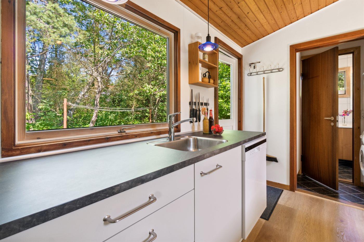 Køkkenet er udstyret med 1 køleskab. Der er 4 keramiske kogeplader, varmluftovn, mikrobølgeovn samt opvaskemaskine.