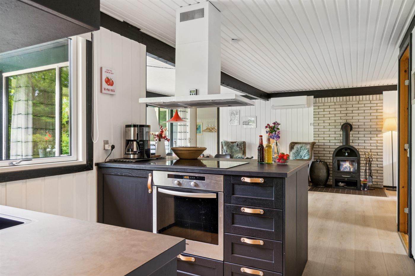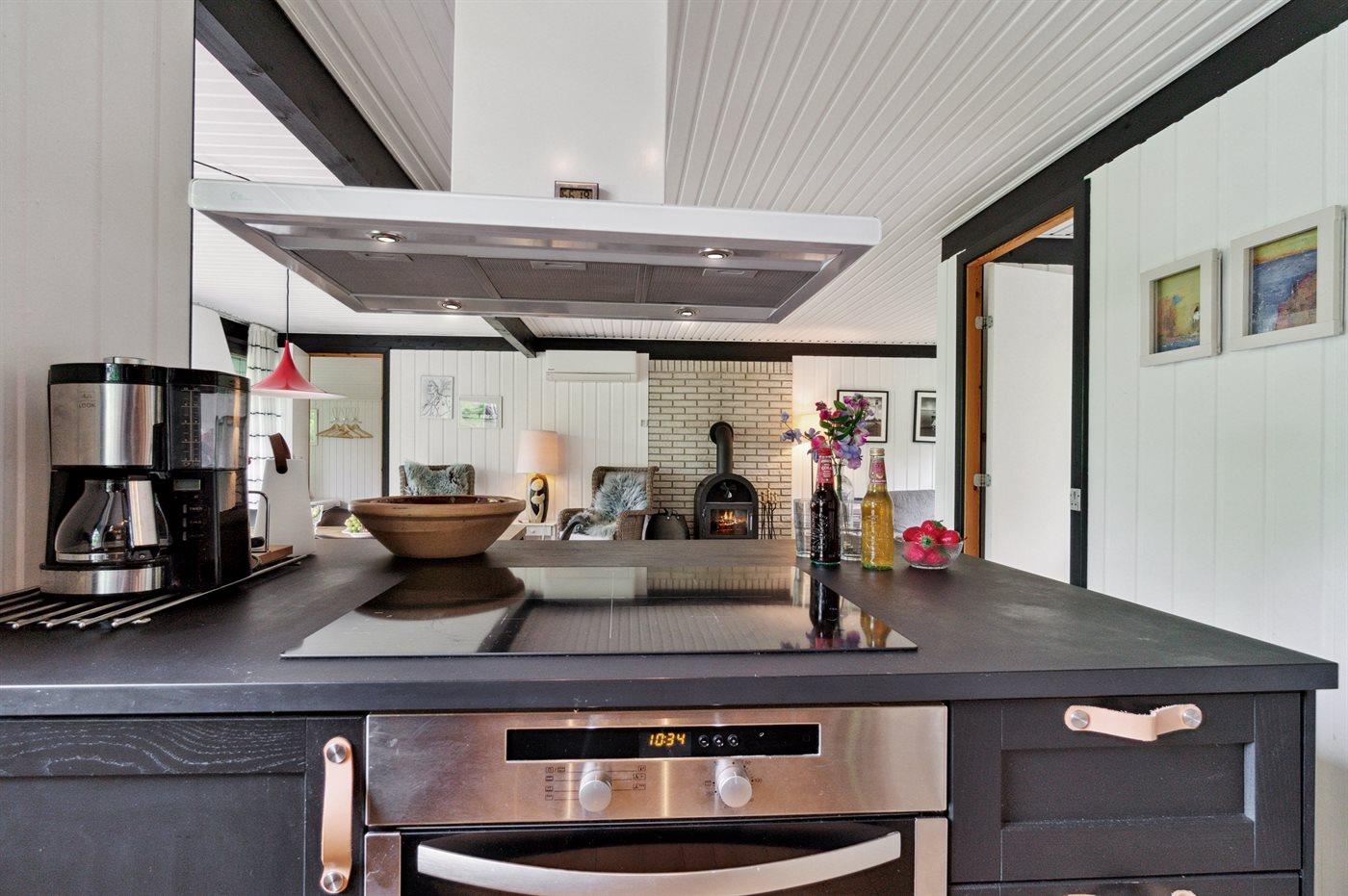 Køkkenet er udstyret med 1 køleskab. Der er 1 induktionskogeplader, varmluftovn, mikrobølgeovn samt opvaskemaskine.