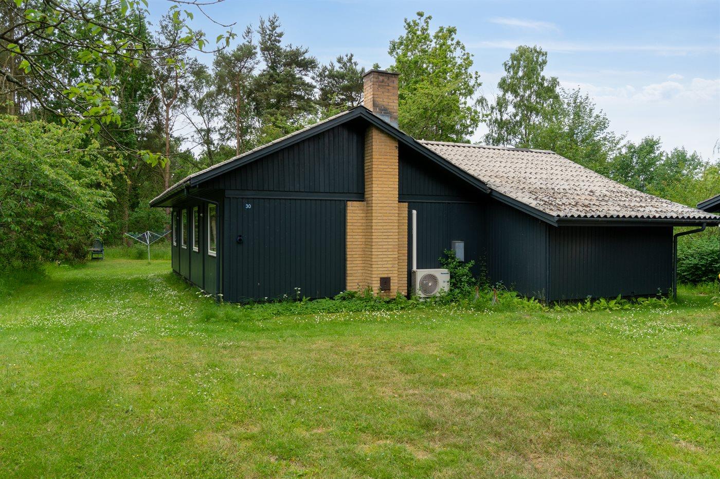 Dette skønne træsommerhus ligger i Vestre Sømarken tæt på en af øens bedste sandstrande, hvor man også på sommerdage kan finde en rolig plet.