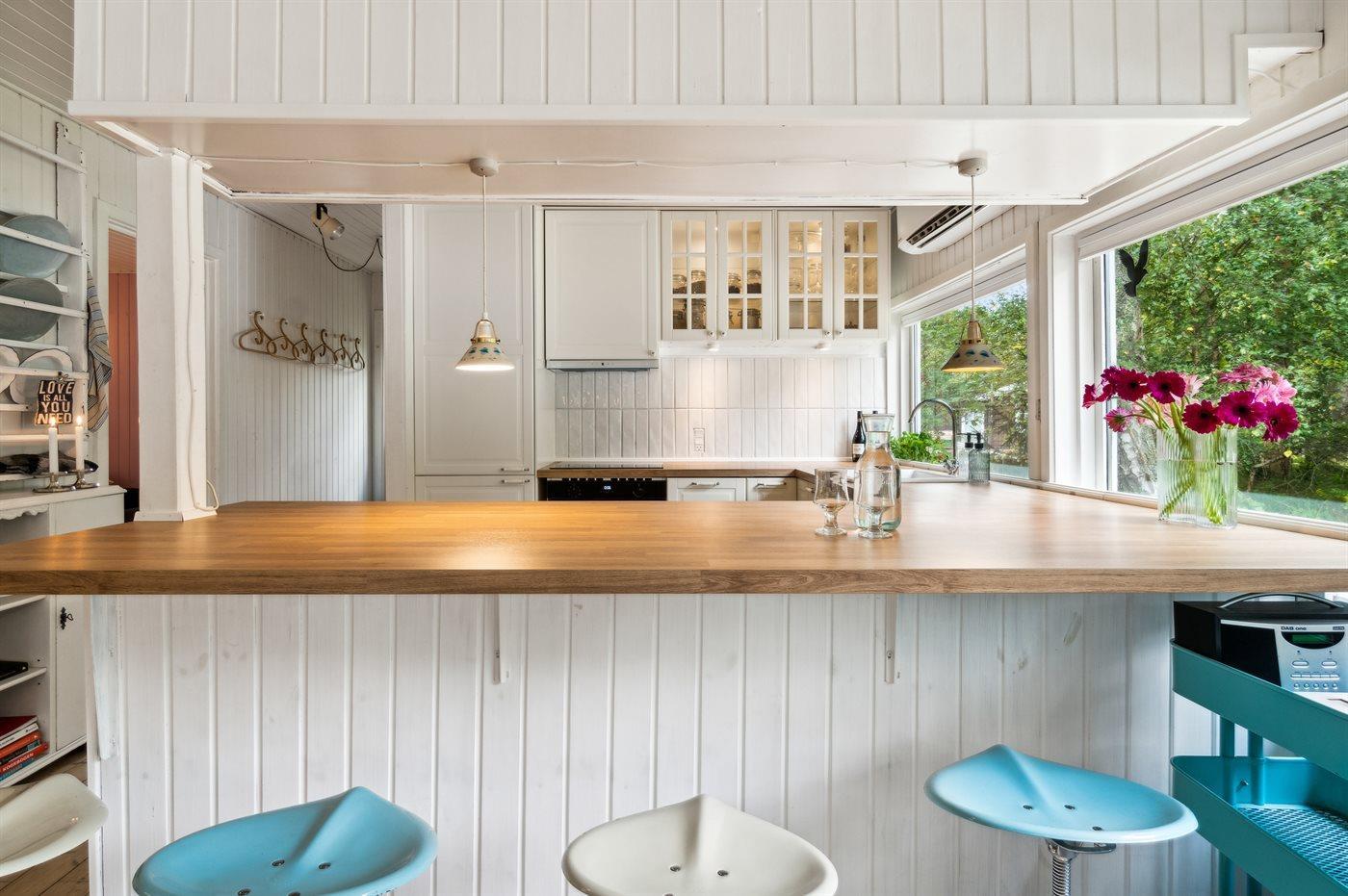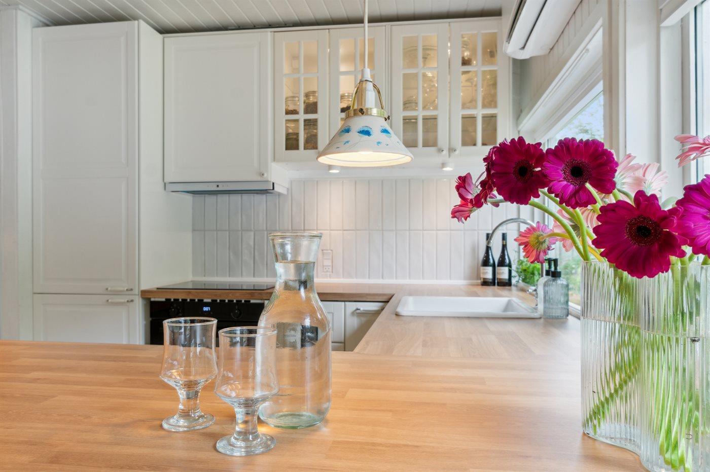 Køkkenet er udstyret med 2 køleskabe. Der er 4 keramiske kogeplader, varmluftovn, mikrobølgeovn samt opvaskemaskine.