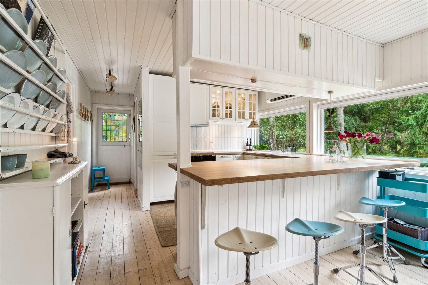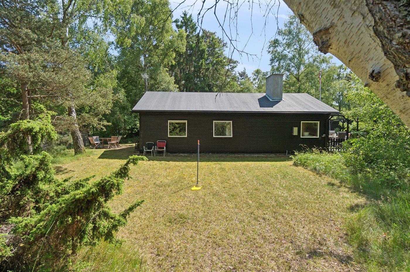 Dette pæne sommerhus ligger lidt tilbagetrukket på en naturgrund med let bevoksning, som skærmer for indblik og sørger for fred og ro. Igennem de senere år er huset moderniseret - blandt andet med nyt, fint og funktionelt køkken. Møbleringen er af rigtig god kvalitet og alt fremstår pænt og nydeligt. Til huset hører en stor, delvis overdækket terrasse og en indbydende udestue, hvorfra man kan nyde naturen og omgivelserne på første parket.
