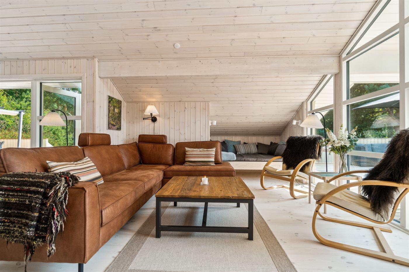 Moderne sommerhus med store terrasser og strandnærhed