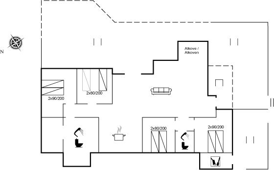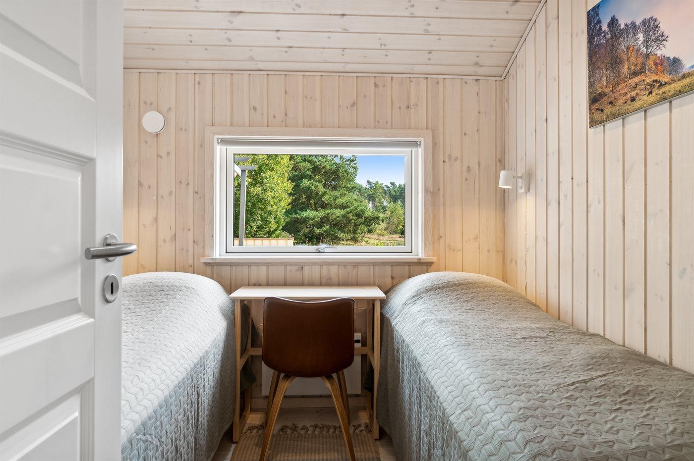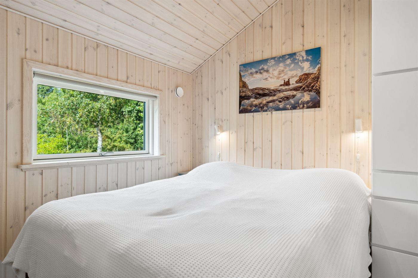 Der er i alt 4 soveværelser. Sovepladserne fordeler sig på: 6 sovepladser i dobbeltsenge. 2 sovepladser i enkeltsenge.