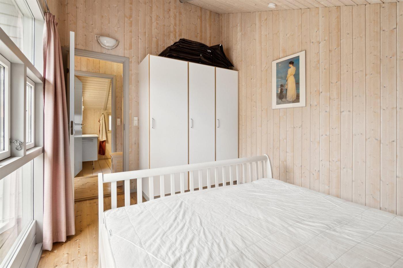 Der er i alt 3 soveværelser. Sovepladserne fordeler sig på: 2 sovepladser i dobbeltseng. 4 sovepladser i enkeltsenge. Derudover er der 1 stk. barneseng.