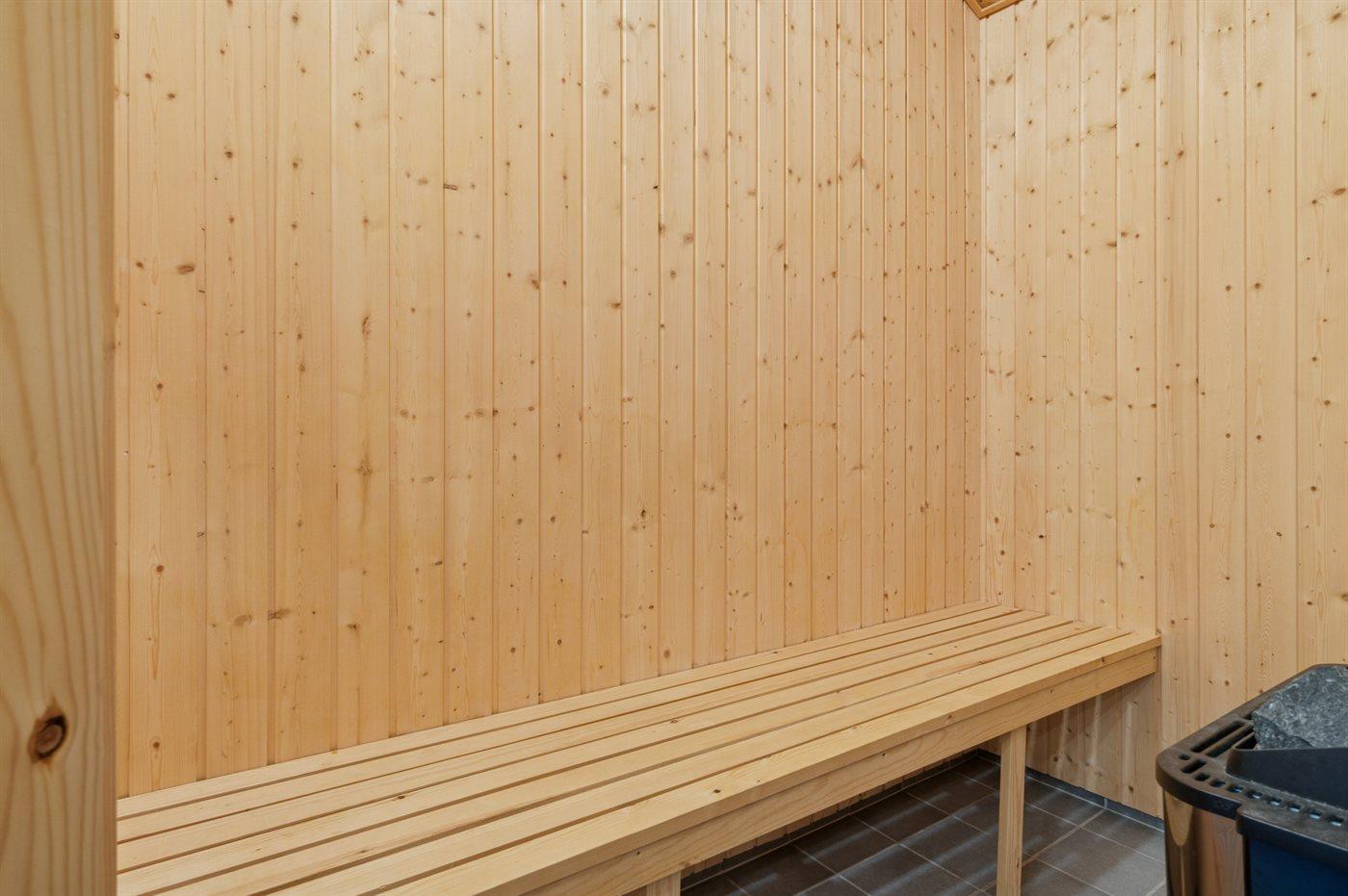 Der er 2 badeværelser med bruseniche og 2 toiletter. Der er gulvvarme på 2 badeværelser. I saunaen er der mulighed for afslapning.