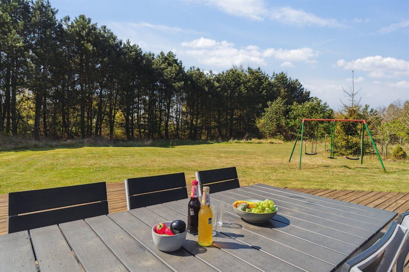 Et pragtfuldt sommerhus beliggende på en stor naturgrund nær dejlig sandstrand og flot natur. Huset er lyst og moderne indrettet med et åbent køkken med alt i hårde hvidevarer og det er en fornøjelse at tilberede de mange måltider i disse rammer.