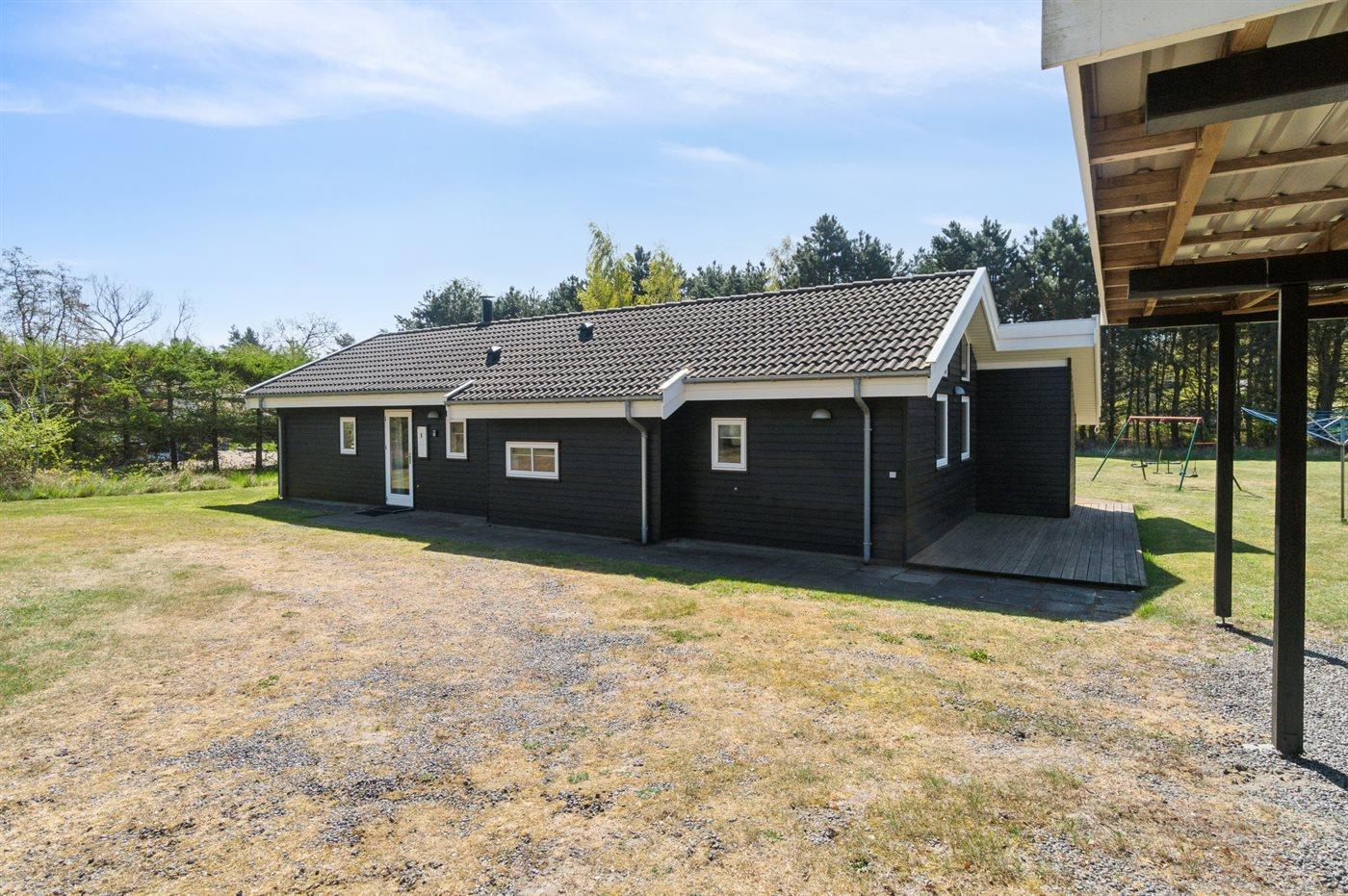 Ferieboligen er beliggende på en 2000 m² stor naturgrund. Der er 500 m til havet. Nærmeste forretning er beliggende i en afstand af 3000 m. Der er en golfbane i en afstand af 6000 m. Til ferieboligen hører åbent terrasseareal. Desuden er der overdækket terrasse. Der er redskabsrum. Gynge. Grill til rådighed. Der er carport til rådighed. Parkering ved ferieboligen.