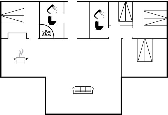 Der findes også en flot design-køkkenafdeling, som er kombineret med det store spise-/opholdsrum. 2 badeværelser, hvor der i det ene er mulighed for wellness i spaen. Sovepladserne fordeler sig på 4 gode værelser med behagelige senge samt 2 sovepladser på husets hems.