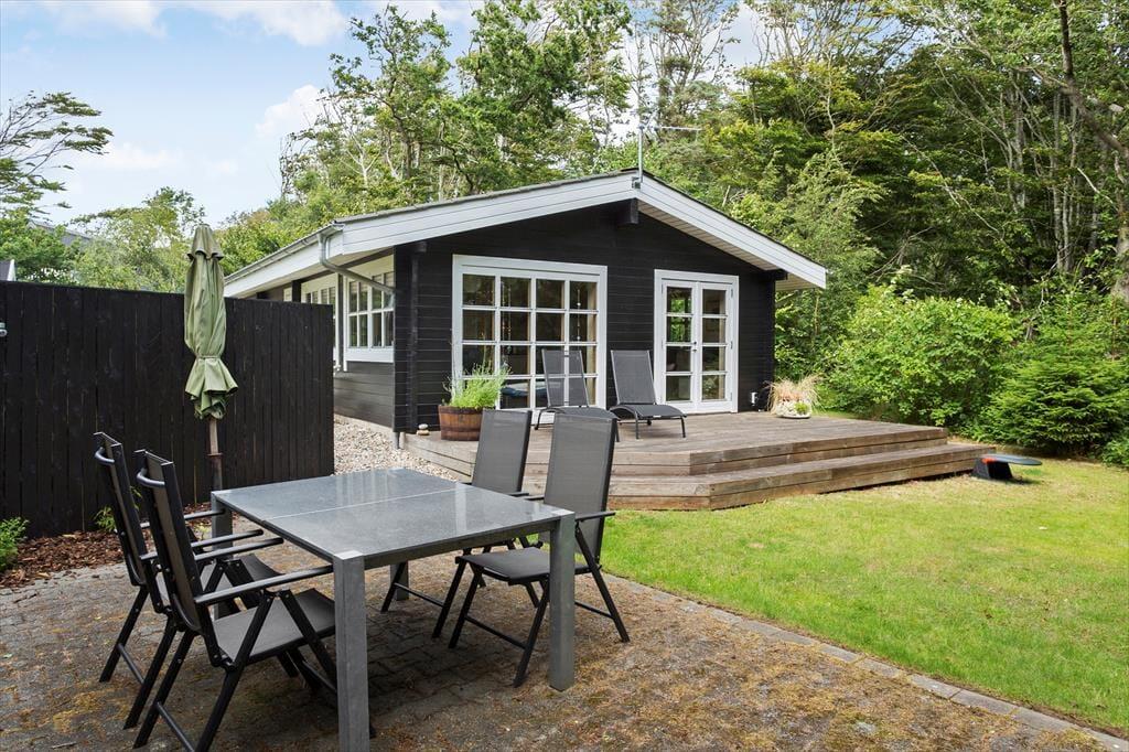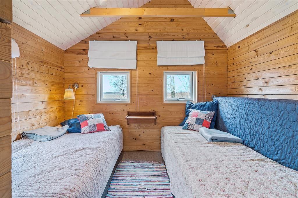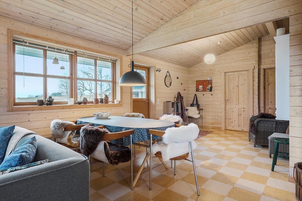 Selvom opførelsesåret er 2014 og huset altså er et nyere byggeri, er den gode, danske sommerhustradition holdt i hævd her på adressen. Huset har loft til kip, lyse trævægge og sprossevinduer på helt klassisk manér, mens det lækre åbne køkken og det flotte ternede gulv giver rummene et mere moderne præg. Køkkenet ligger som del af stuen, der er indrettet med varmepumpe, fladskærms-tv og hyggeligt møblement, og de to soveværelser er begge udstyret med en dobbeltseng. Badeværelset er et stort og stilfuldt rum med glasbruseniche, vaskemaskine og tørretumbler, så I har mulighed for at friske feriegarderoben op. Et anneks hører også med til huset, og her står der to enkeltsenge, så i alt er der plads til seks personer.
