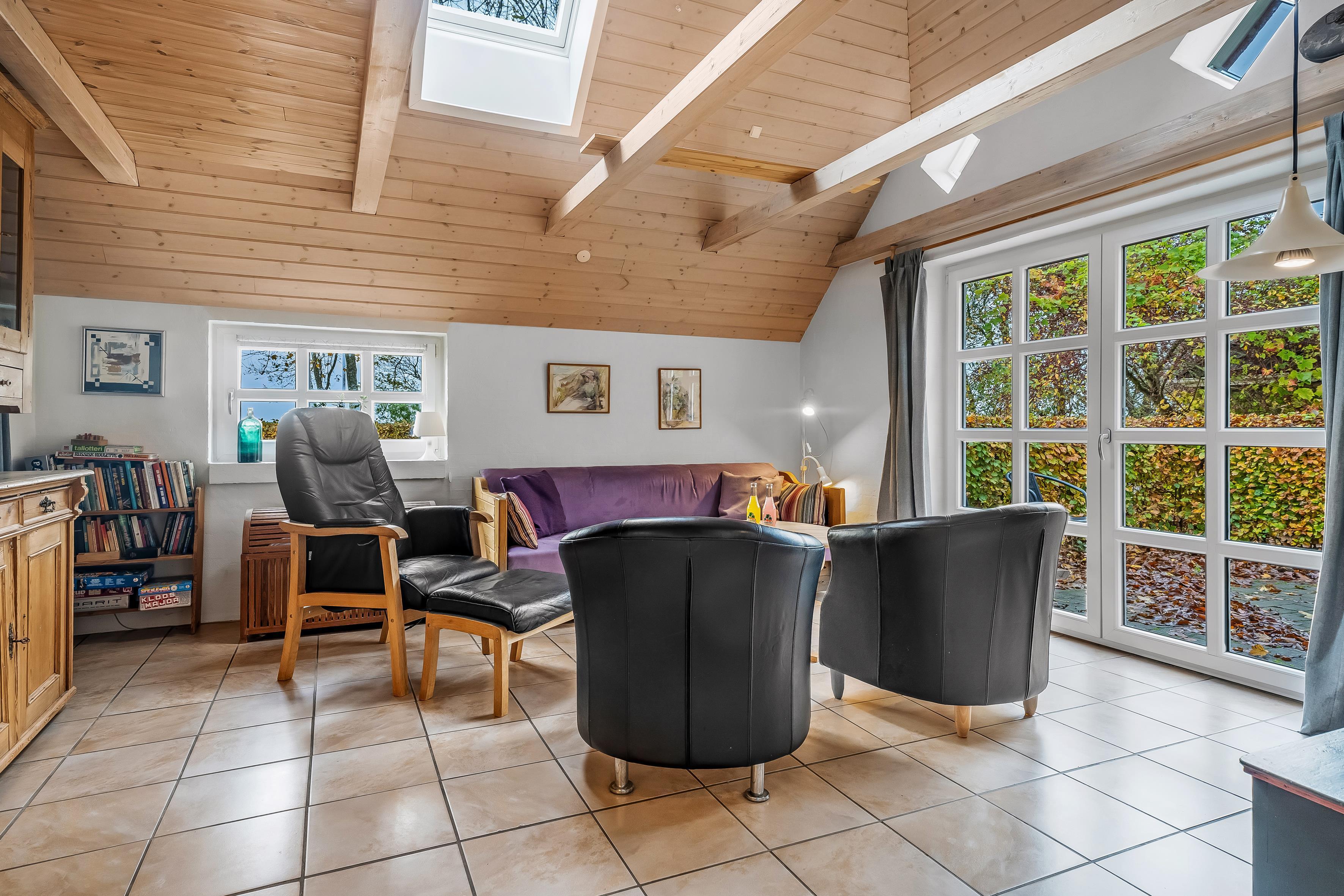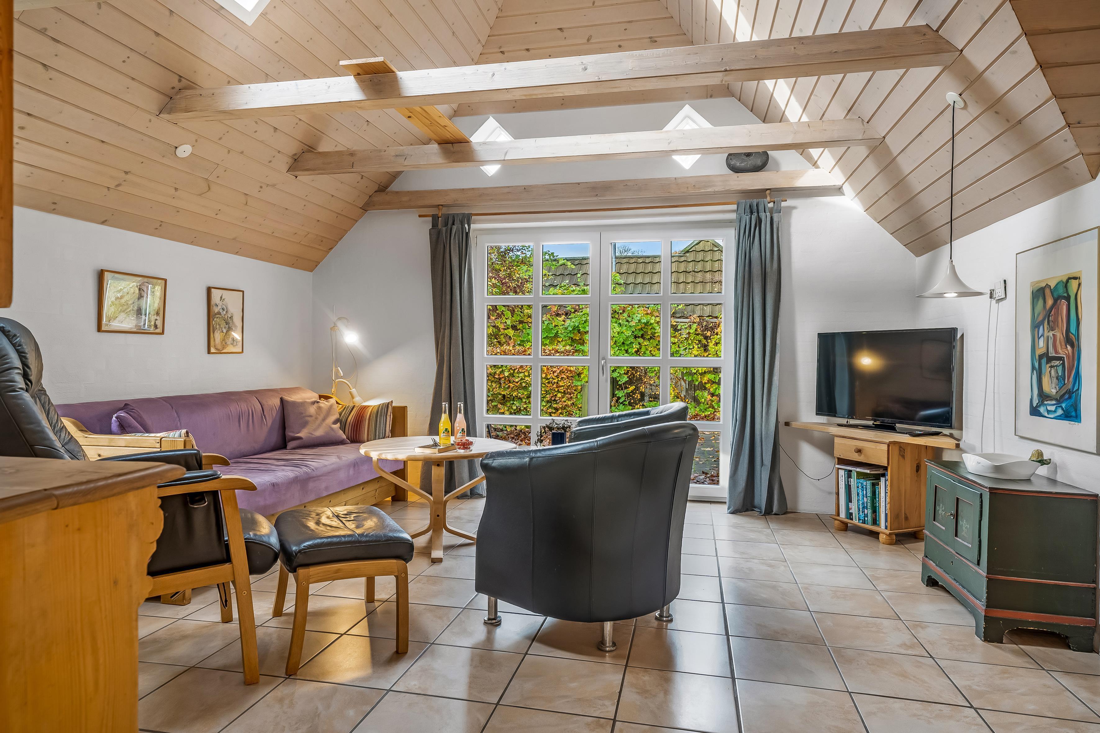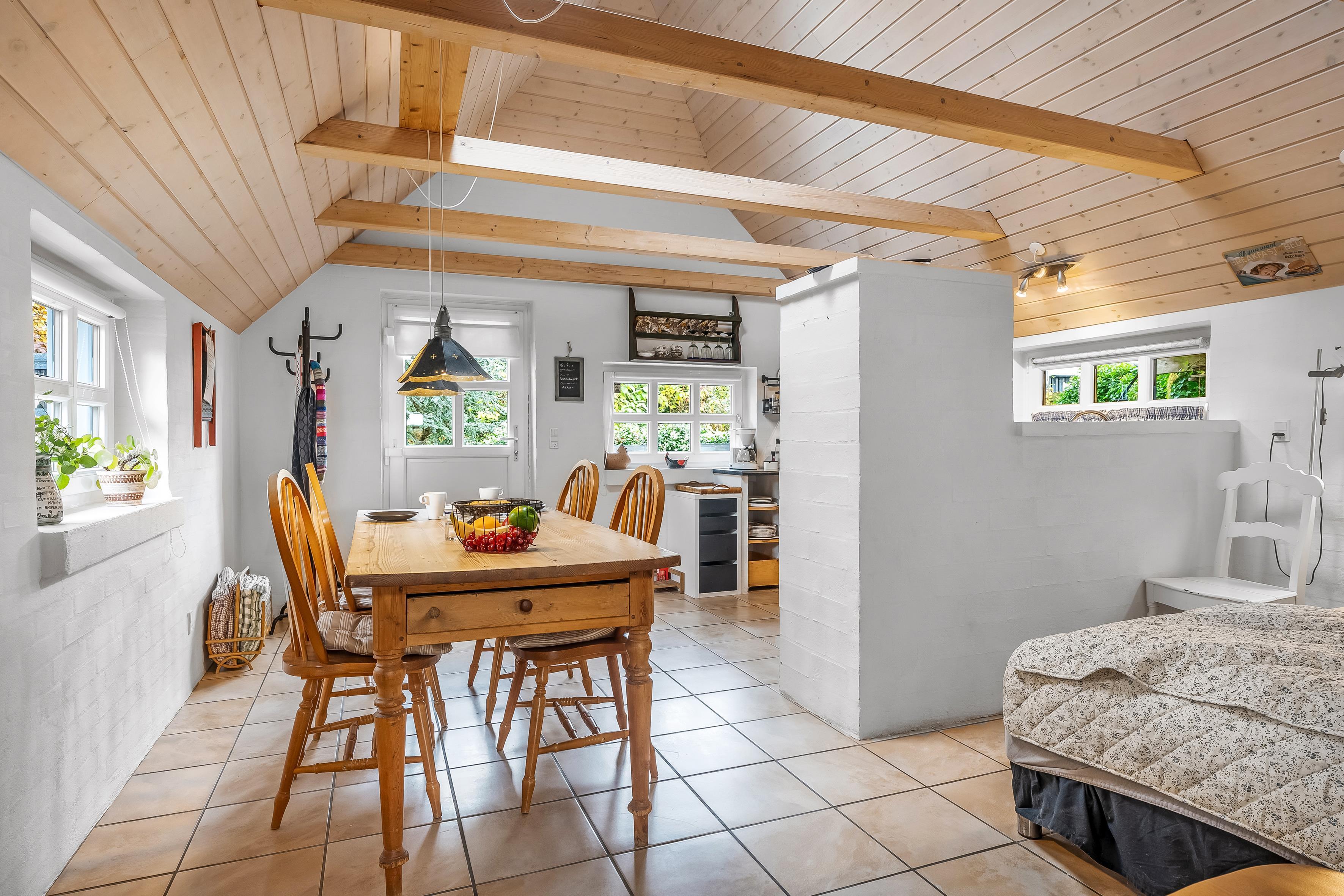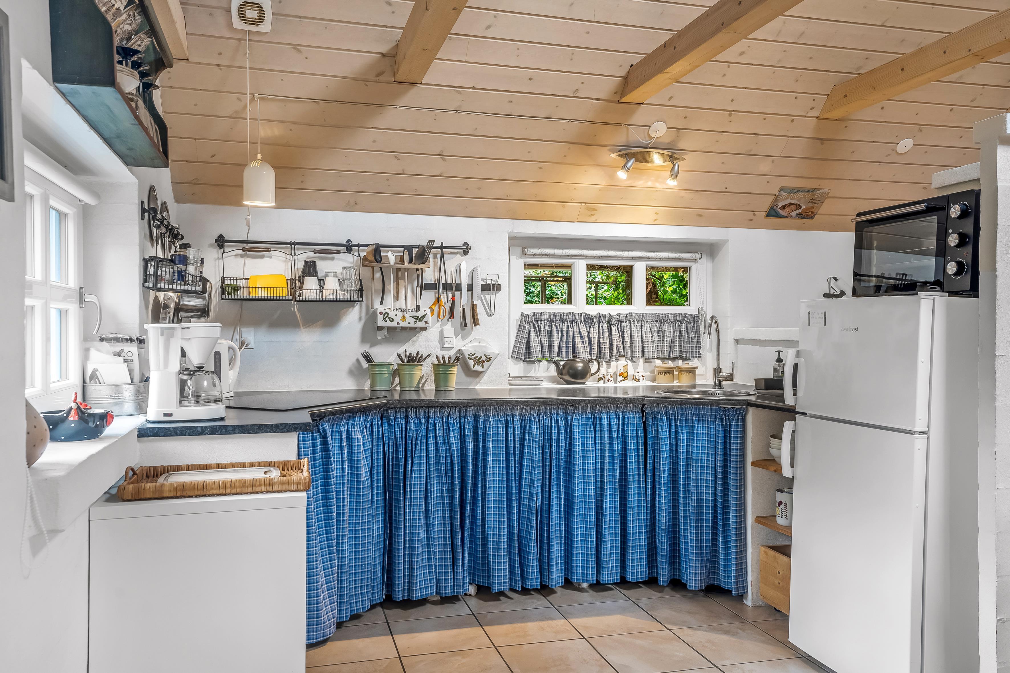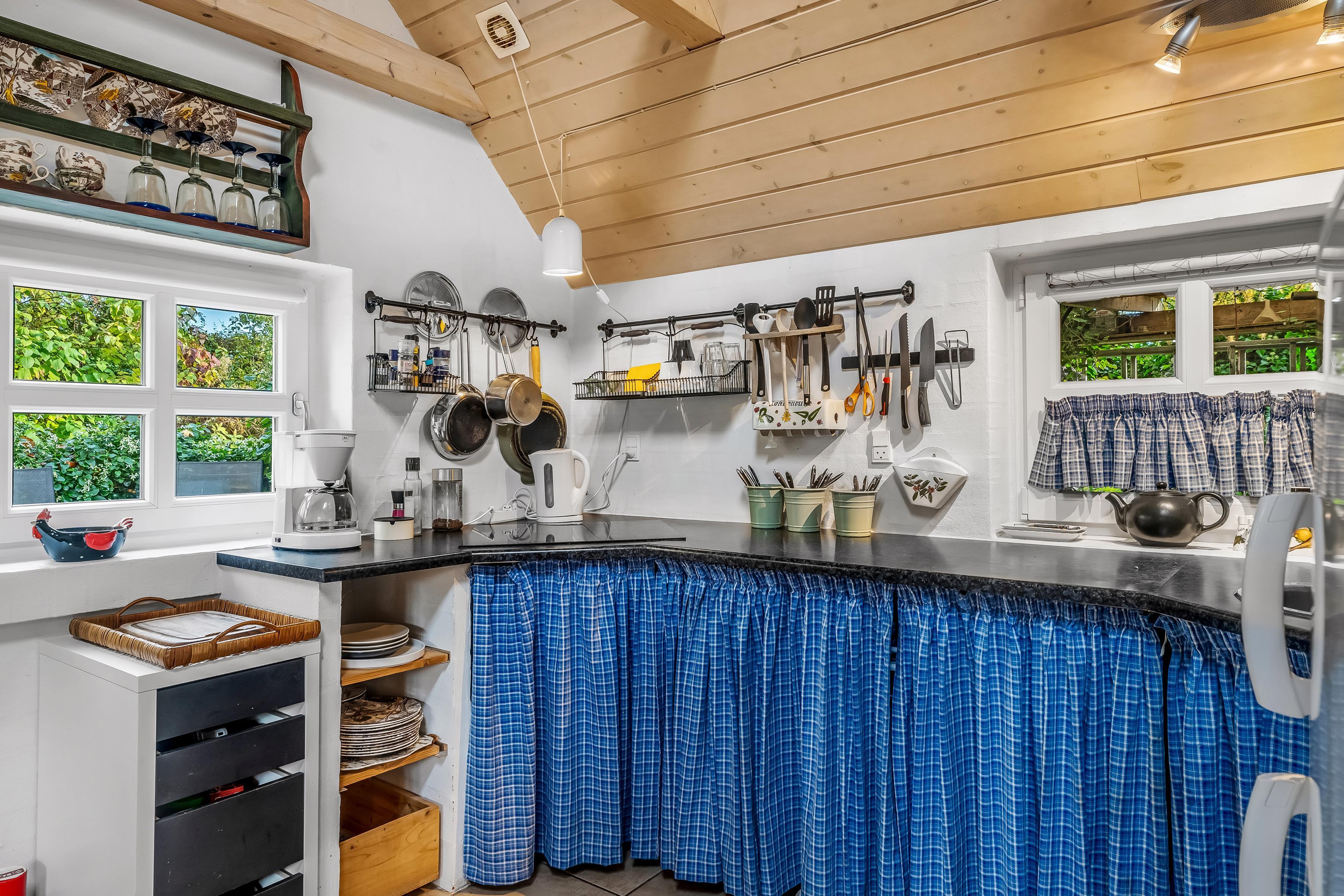 Fra det øjeblik du træder ind i huset, vil du føle dig hjemme. Den åbne planløsning mellem stue og køkken skaber en lys og indbydende atmosfære. Stuen er udstyret med en komfortabel sovesofa, hvor du kan slappe af efter en lang dag med aktiviteter, og der er også et fjernsyn til underholdning, hvor du kan nyde både dansk og tysk TV. Desuden er der Chromecast tilgængeligt, så du nemt kan streame dine yndlingsprogrammer.