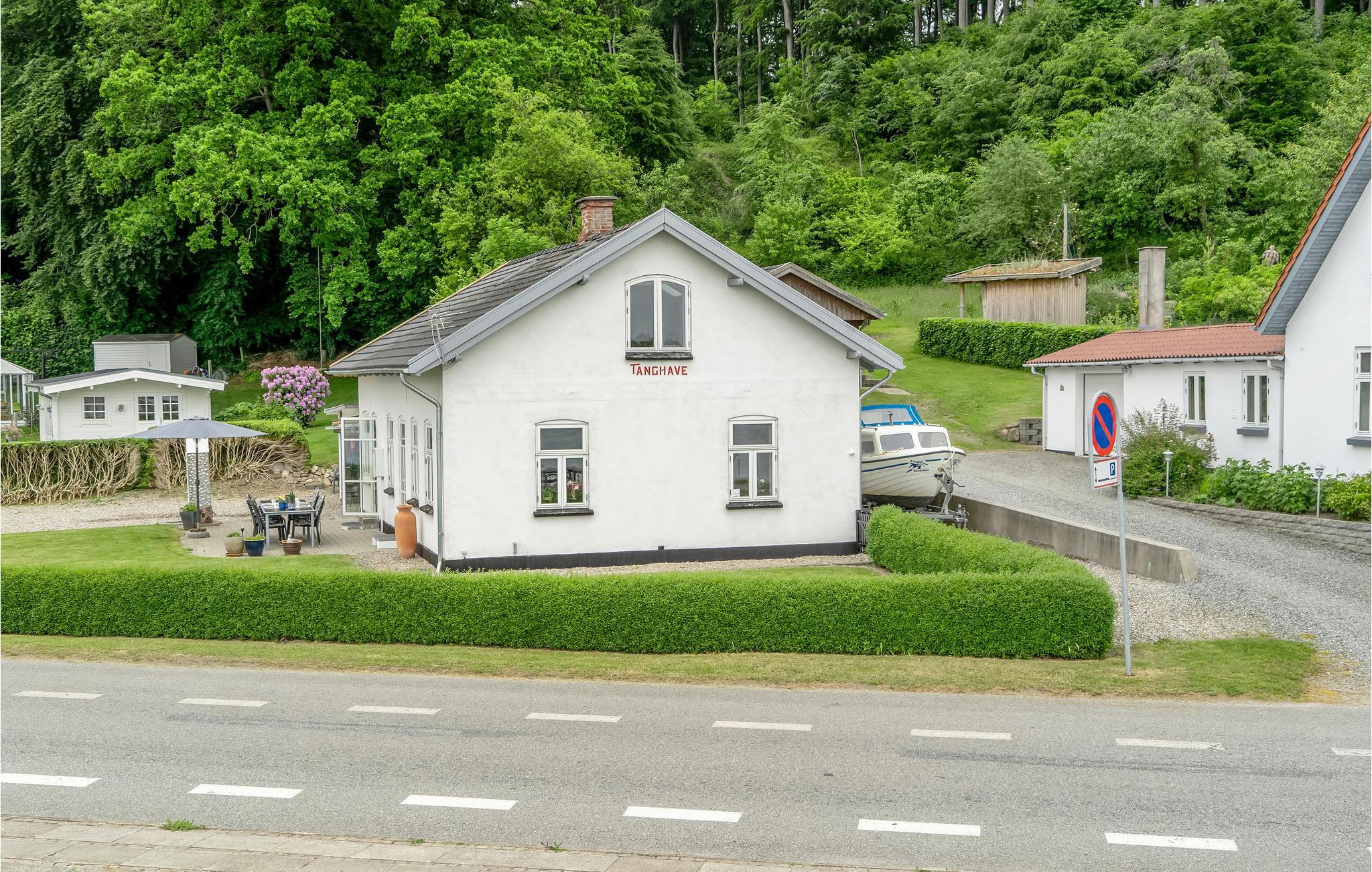 På en dejlig grund kun 50 m fra vandet, ligger dette hyggelige feriehus med en flot panoramaudsigt fra stuen og terrassen. Huset er lyst og personligt indrettet, der er sovepladser i stueetagen, et stort soveværelse på 1. sal samt sovepladser på reposen, hvor der også er en lille legehule til børnene. Fra spisestuen og det ene soverum er der udgang til terrassen, hvor I kan sidde og drikke en kop kaffe, mens I nyder havudsigten. Feriehuset har egen røgeovn, så dagens fangst kan røges på stedet.