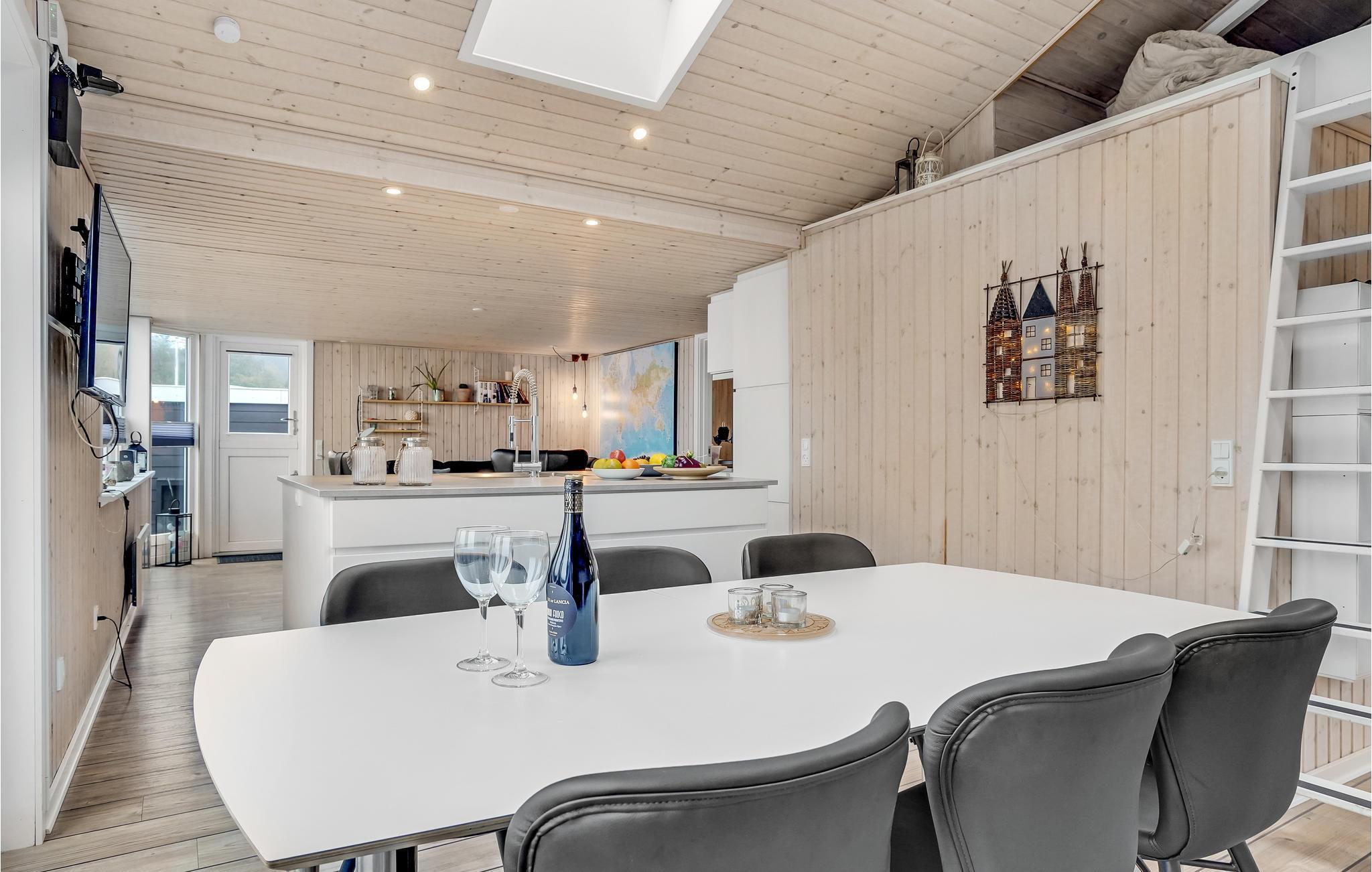 Huset er lyst, moderne og komfortabelt indrettet og skaber perfekte rammer om en afslappende ferie uanset årstid. På kolde dage kan I tænde op i brændeovnen og sidde og læse en god bog til lyden af de knitrende flammer. Om sommeren kan I starte dagen kan med at tilberede en lækker morgenmad i husets rummelige og veludstyrede køkken og derefter nyde den på terrassen med havudsigt. Her kan I sole jer i løbet af dagen og afslutte den med en hyggelig grillaften, mens I nyder havbrisen.