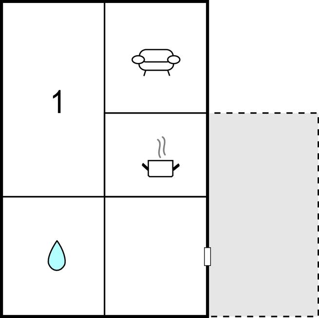 Opholdsstue - 1 Soveplads. (Enkeltseng(e)).