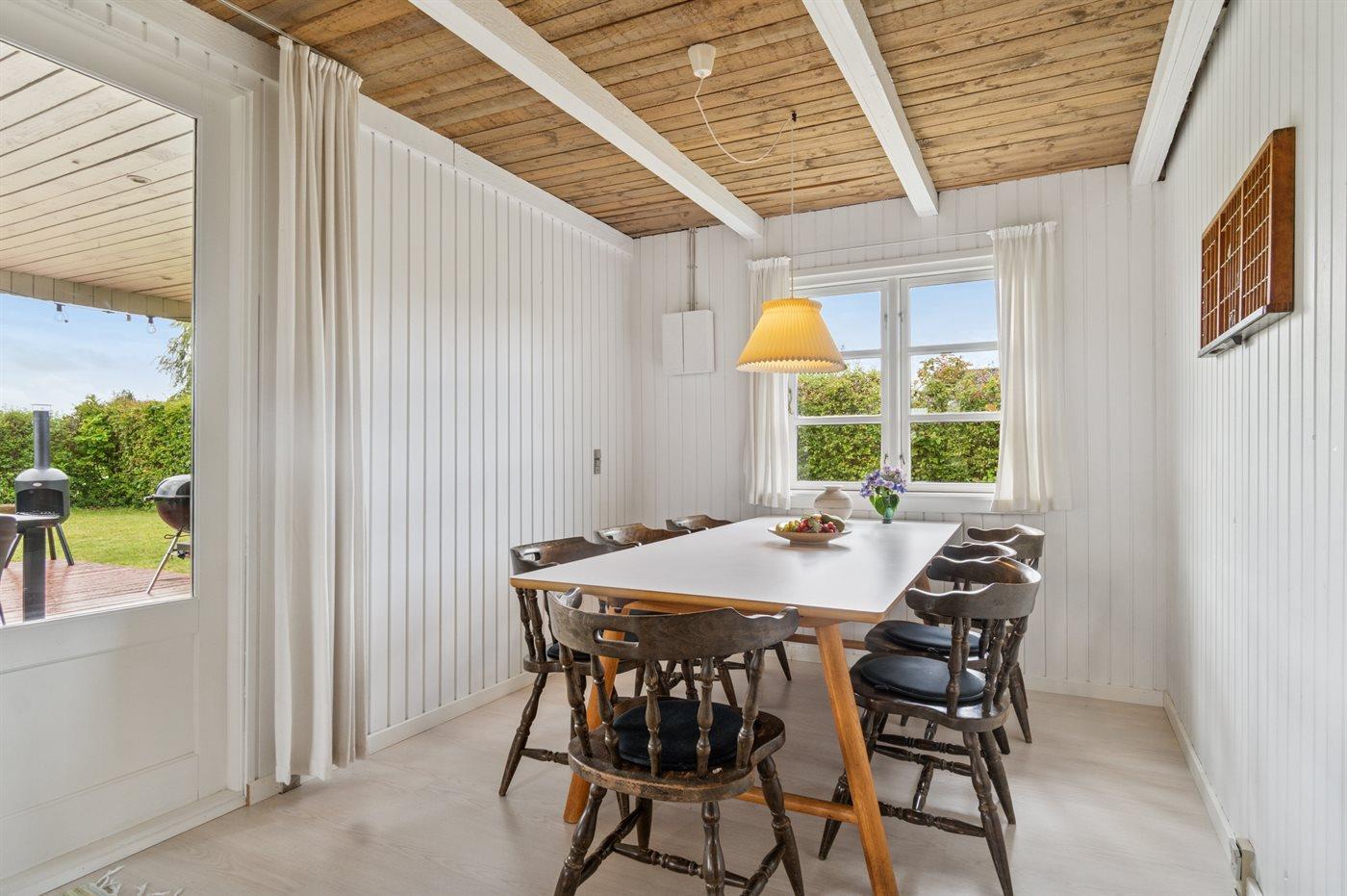 Indvendig fremstår sommerhuset i fin og velholdt stand, og indretningen er lys og moderne med en rigtig god planløsning, som passer godt til f.eks. en børnefamilie eller to par. Det er også muligt at medbringe sit kæledyr. Alt i alt er dette et sommerhus, der byder på de bedste betingelser for en dejlig ferie.
