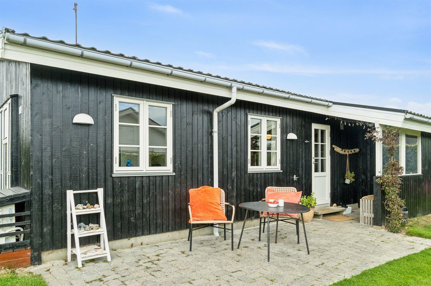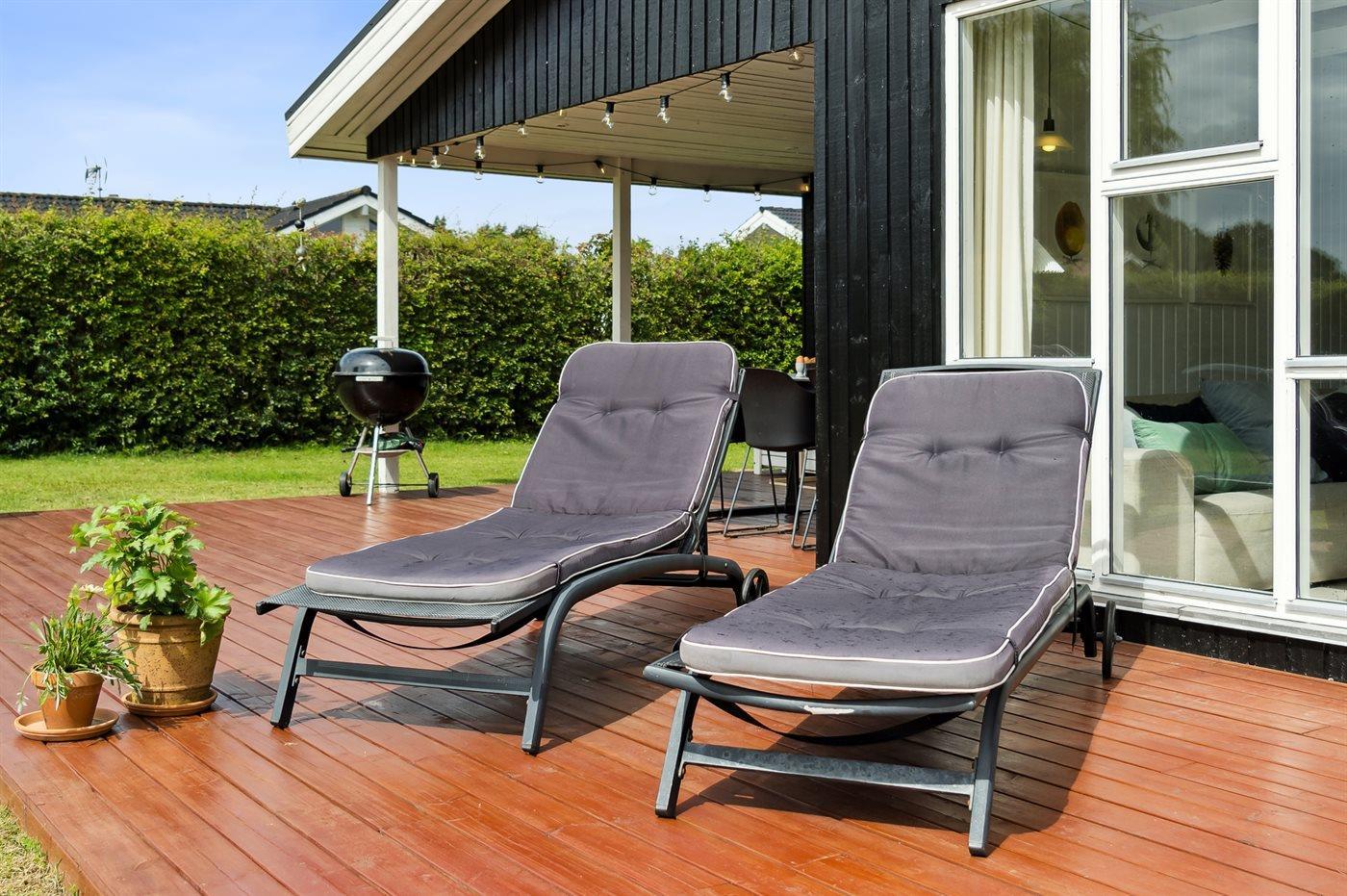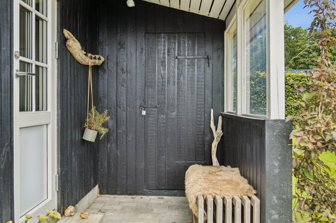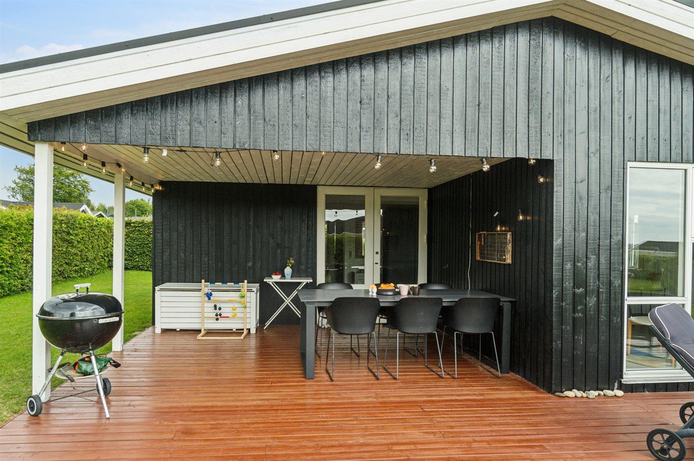 Sommerhuset er beliggende på en rigtig dejlig grund med en skøn have, som er oplagt til leg og hygge. Sommerhuset byder på dejlige, delvist overdækkede terrassearealer, som findes på flere sider af huset. Således er det stort set altid muligt at finde et hjørne med læ, hvor man kan nyde solen og sidde med et glas vin eller en kop kaffe i fredelige og naturskønne omgivelser.