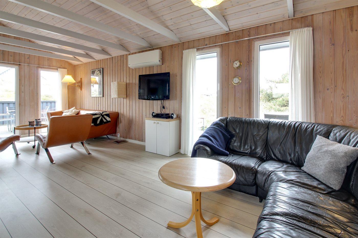Et meget hyggeligt og velindrettet sommerhus med 1. sal. Fra reposen er der udgang til balkon med havblik. Huset har en dejlig uopvarmet havestue og rigtig fine terrasseforhold. Huset er løbende moderniseret. Bemærk, at der er mulighed for at medbringe 1 ekstra barn (4-12 år) - for nærmere information kontakt venligst lokalbureauet på Fanø.