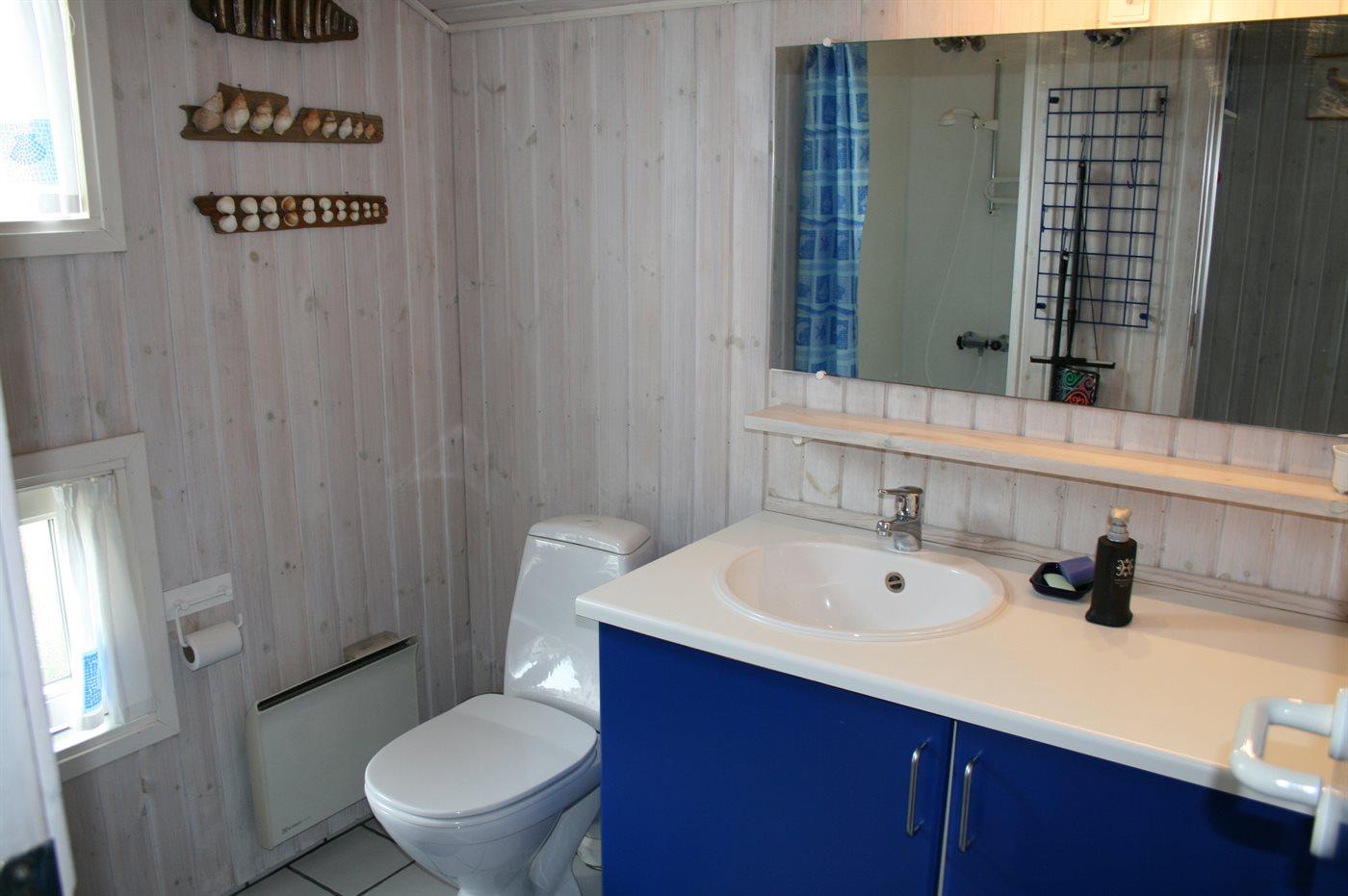 Der er 1 badeværelse med bruseniche og 1 toilet.