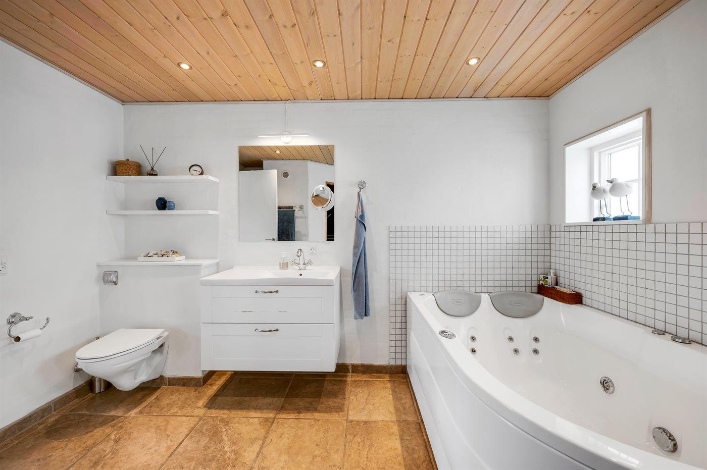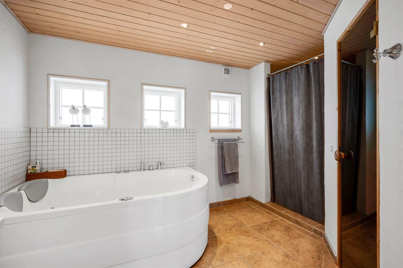 Der er 2 badeværelser med bruser og 2 toiletter, heraf 1 gæstetoilet. Der er gulvvarme på 1 badeværelse. Der er gulvvarme på gæstetoilettet. I saunaen er der mulighed for afslapning.