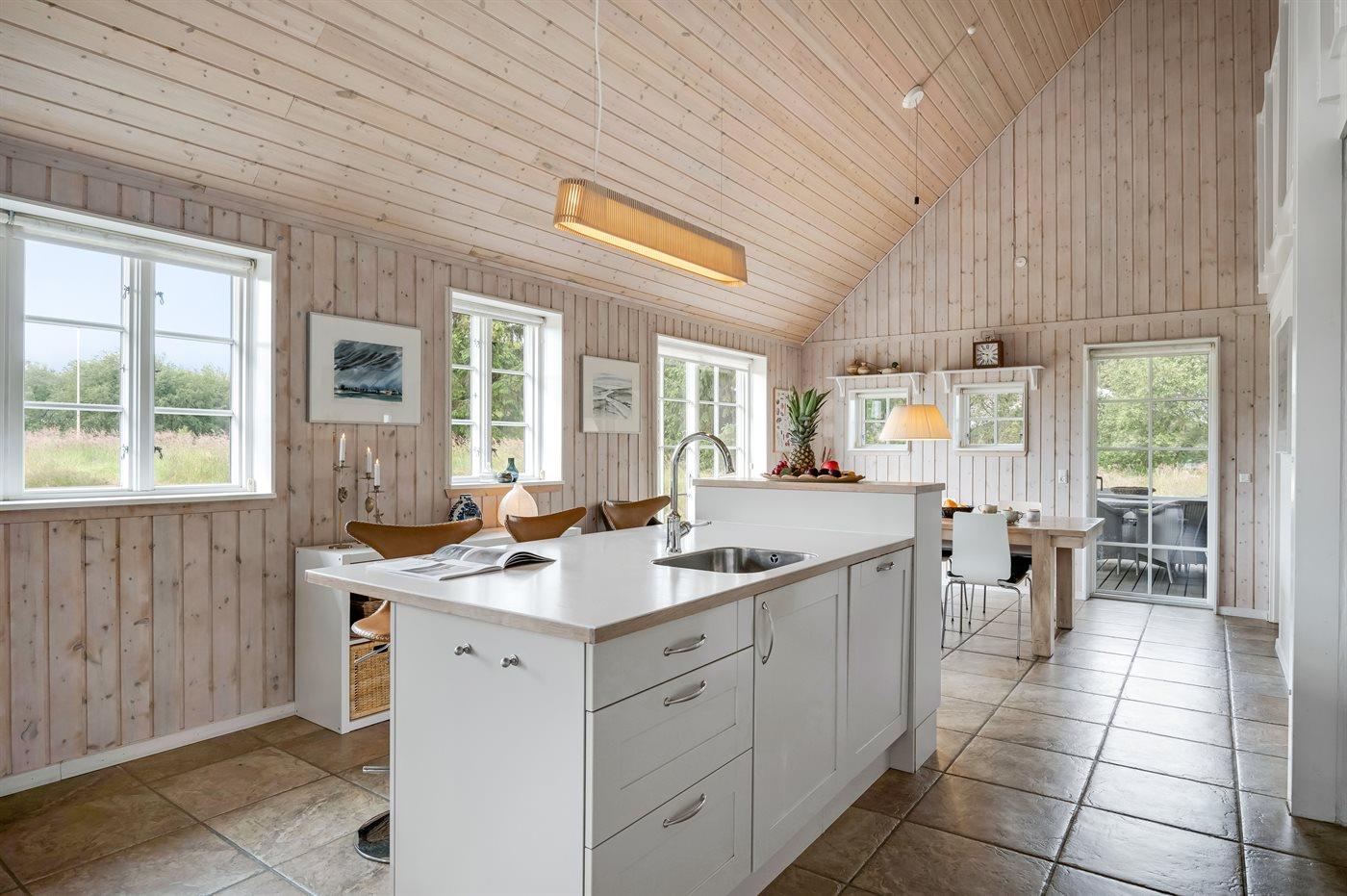 Køkkenet er udstyret med 1 køleskab. Der er 4 induktionskogeplader, varmluftovn, mikrobølgeovn samt opvaskemaskine.