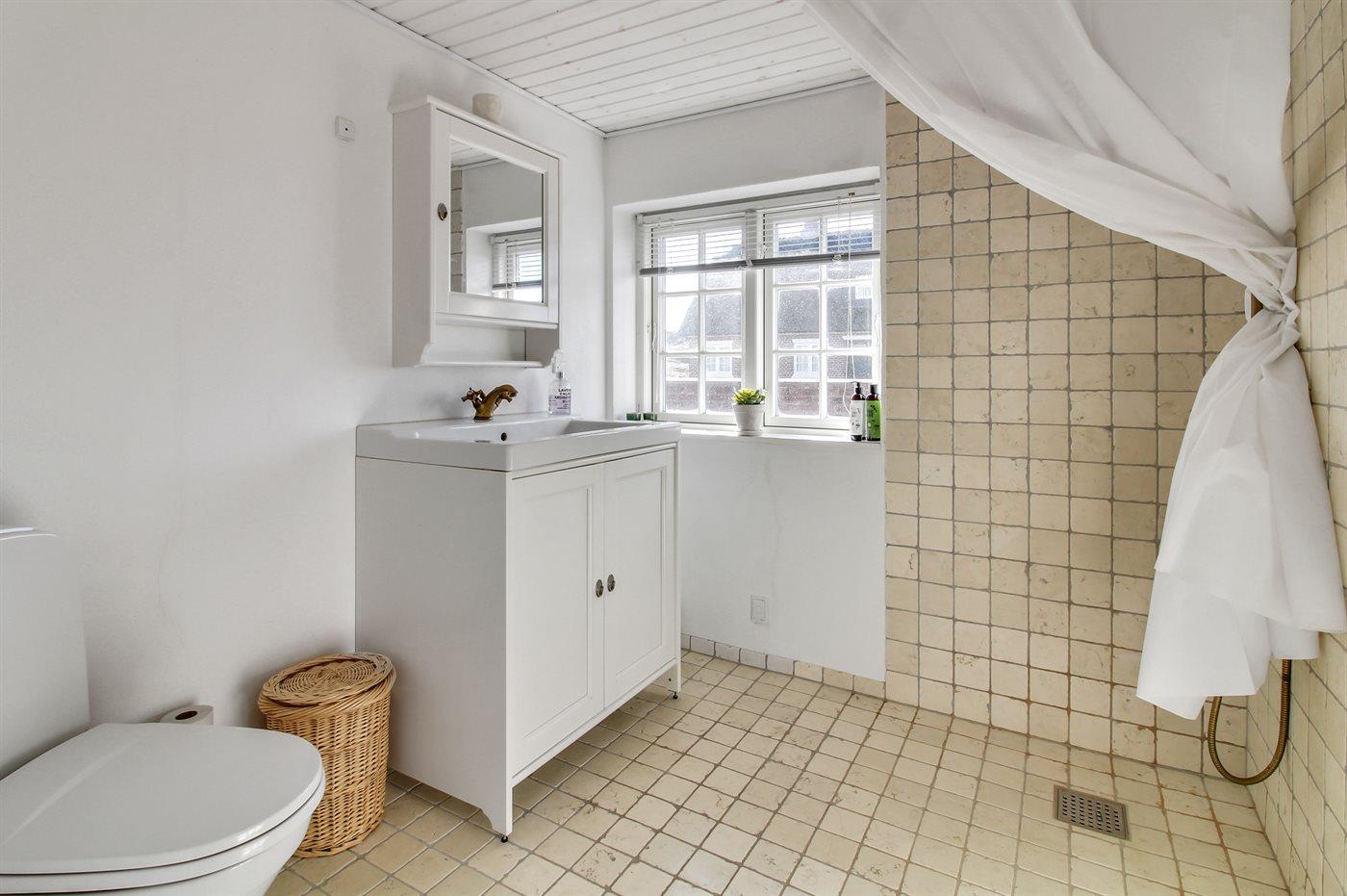 Der er 1 badeværelse med bruser og 1 toilet.. Der er gulvvarme på 1 badeværelse.
