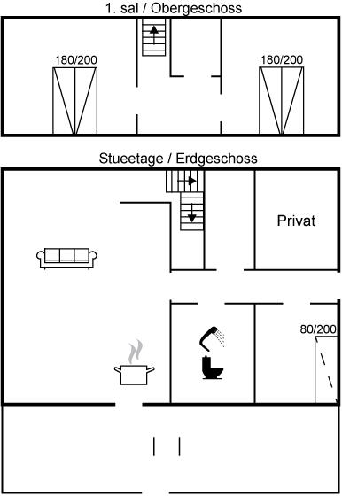 Der er i alt 3 soveværelser. Sovepladserne fordeler sig på: 4 sovepladser i dobbeltsenge. 1 soveplads i sovesofa (enkelt).