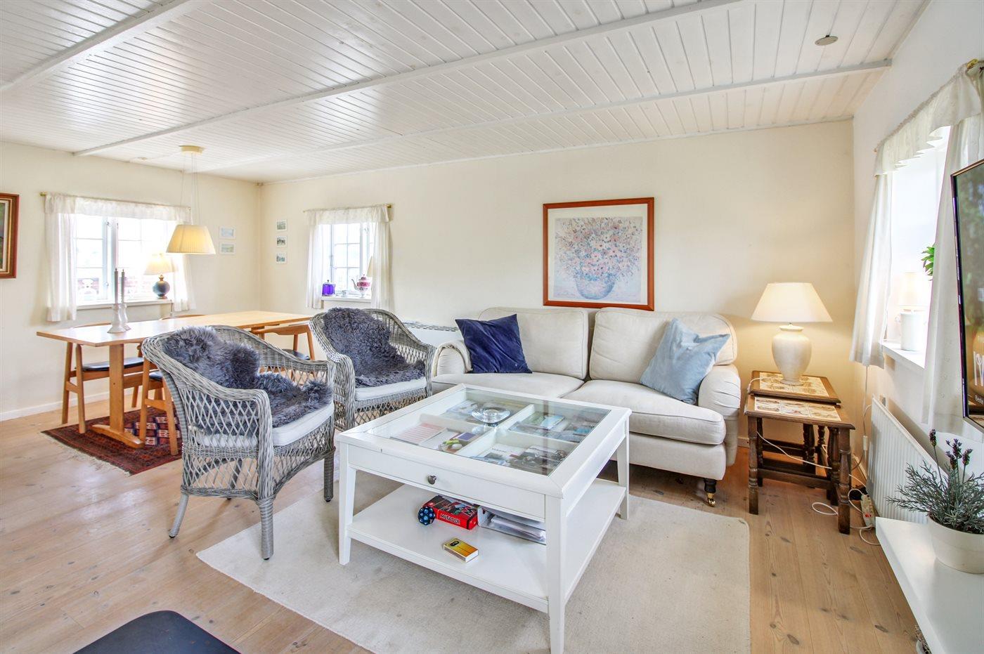 Charmerende og moderniseret sommerhus med stråtag i ugenert beliggenhed på Fanø-klitgrund.