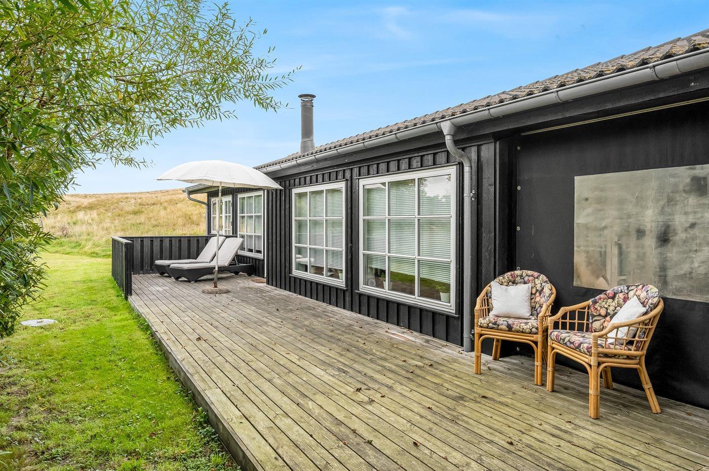 Ferieboligen er beliggende på en 2128 m² stor naturgrund. Der er 1500 m til havet. Der er 1000 m til Vadehavet. Nærmeste forretning er beliggende i en afstand af 800 m. Der er en golfbane i en afstand af 13000 m. Til ferieboligen hører 70 m² terrasseareal. Desuden er der 14 m² overdækket terrasse. Der er redskabsrum. Gynge. Grill til rådighed. Parkering ved ferieboligen.