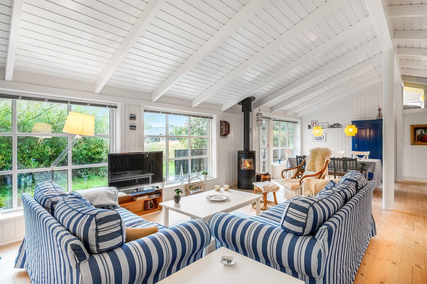 Sommerhuset egner sig til 6 personer. Ferieboligen er på 98 m² og er bygget i 2012. Det er tilladt at medbringe 1 husdyr. Ferieboligen er udstyret med energibesparende varmepumpe. Ferieboligen har vaskemaskine. Frysekapacitet på 60 liter. Der er desuden brændeovn. Til de små er der 1 stk. barnestol.