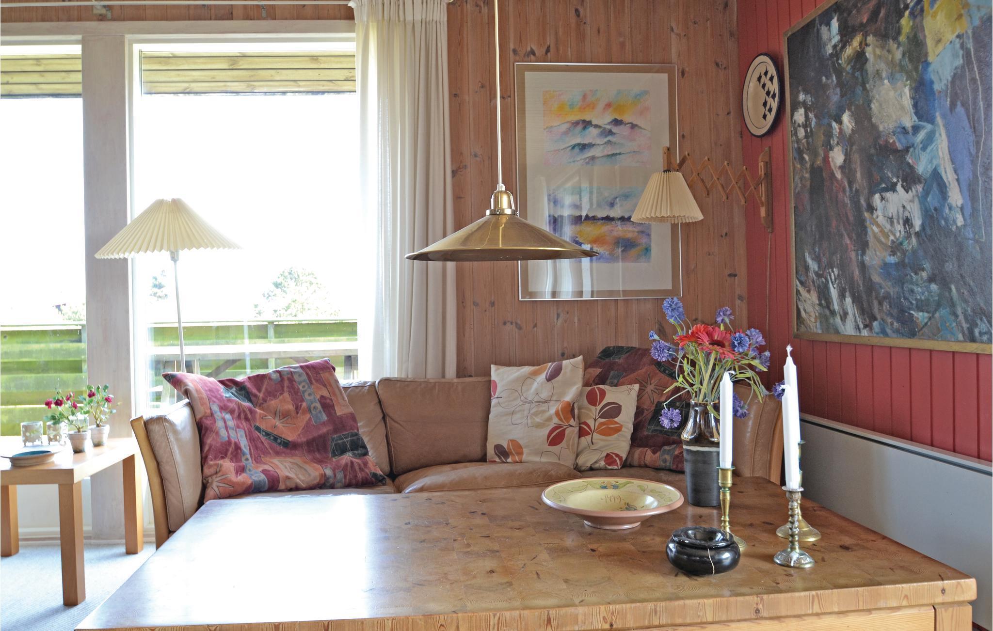 Hold jeres næste ferie i dette feriehus på Sønderhos sydstrand. Huset ligger midt i det maleriske klitlandskab og tilbyder et dejligt udgangspunkt for afslappende dage i naturen. jeres sommerhus er enkelt, men funktionelt indrettet. Opholdsstuen med store vinduespartier giver masser af naturligt lys og giver jer en vidunderlig udsigt over de omkringliggende klitter. En lille brændeovn giver hyggelig varme på kølige aftener. Det åbne køkken er funktionelt indrettet og støder op til spise- og opholdsstuen, hvor I kan nyde jeres måltider.