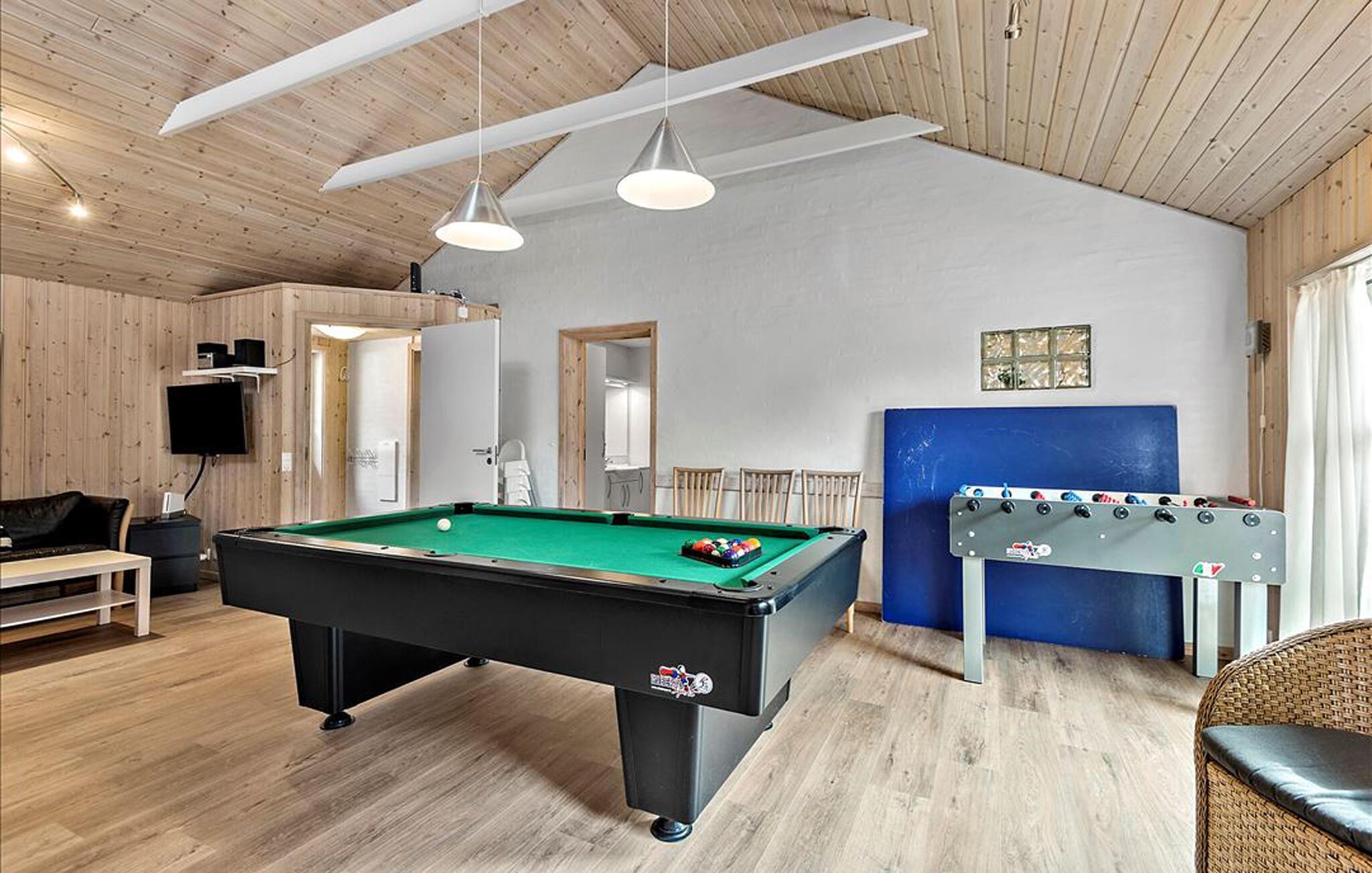 Dette flotte poolhus er beliggende i området tæt på Sønderho by, der er en velbevaret skipperby, hvor krogede gader og hyggeligt miljø leder tankerne hen på de tider hvor Fanø var skippernes og de søfarendes ø, og som i 2011 er blevet kåret til Danmarks smukkeste landsby. Huset er velindrettet med gode soverum, stort køkken i åben forbindelse med stuen samt et godt stort aktivitetsrum med bl.a. bordtennis og bordfodbold. God stor terrasse samt gynger og sandkasse hører ligeledes til huset. Dette hus har alt til både ren afslapning i det store poolrum - samt masser af sjov og aktiviteter inde som ude. Et godt hus med gode muligheder for variationsrige feriedage året rundt - både til familier og firmaer. Rejsen til det vestligste Danmark er hele turen værd - uanset årstiden. Det er ikke kun i sommerperioden, hvor den unikke landsdel er et spændende bekendtskab. På Fanø møder I en helt speciel kultur og I betages af den smukke natur og den 12 km lange sandstrand, som hører til blandt Europas bedste.