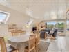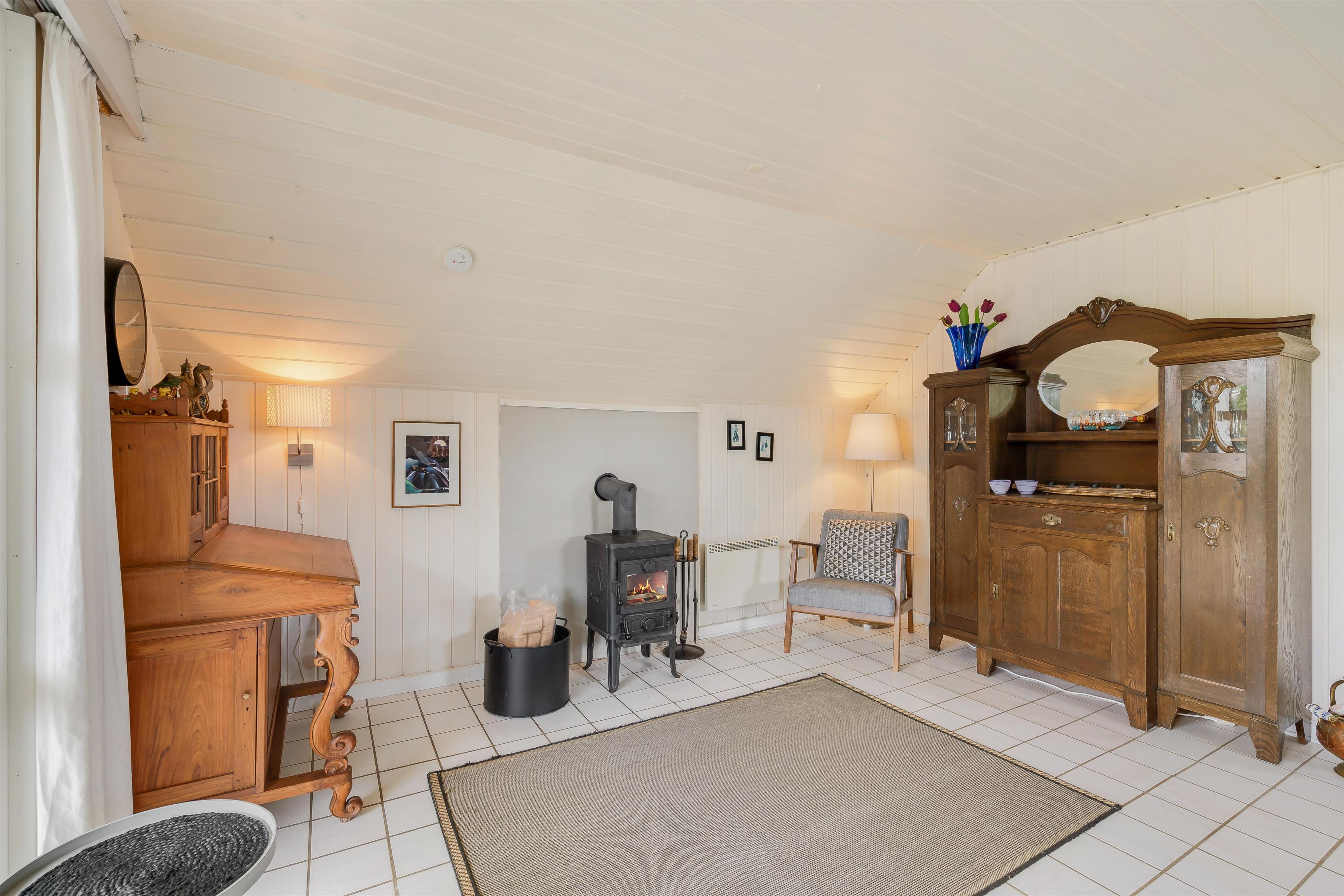 Her får I et sommerhus, der samler familien til hyggelige stunder sammen. Stue, spiseplads og det veludstyrede køkken med opvaskemaskine er nænsomt forenet, og danner de perfekte rammer om mange hyggelige aftener sammen foran brændeovnen. For en hurtig og energibesparende opvarmning af sommerhuset, råder I her også over en varmepumpe.
