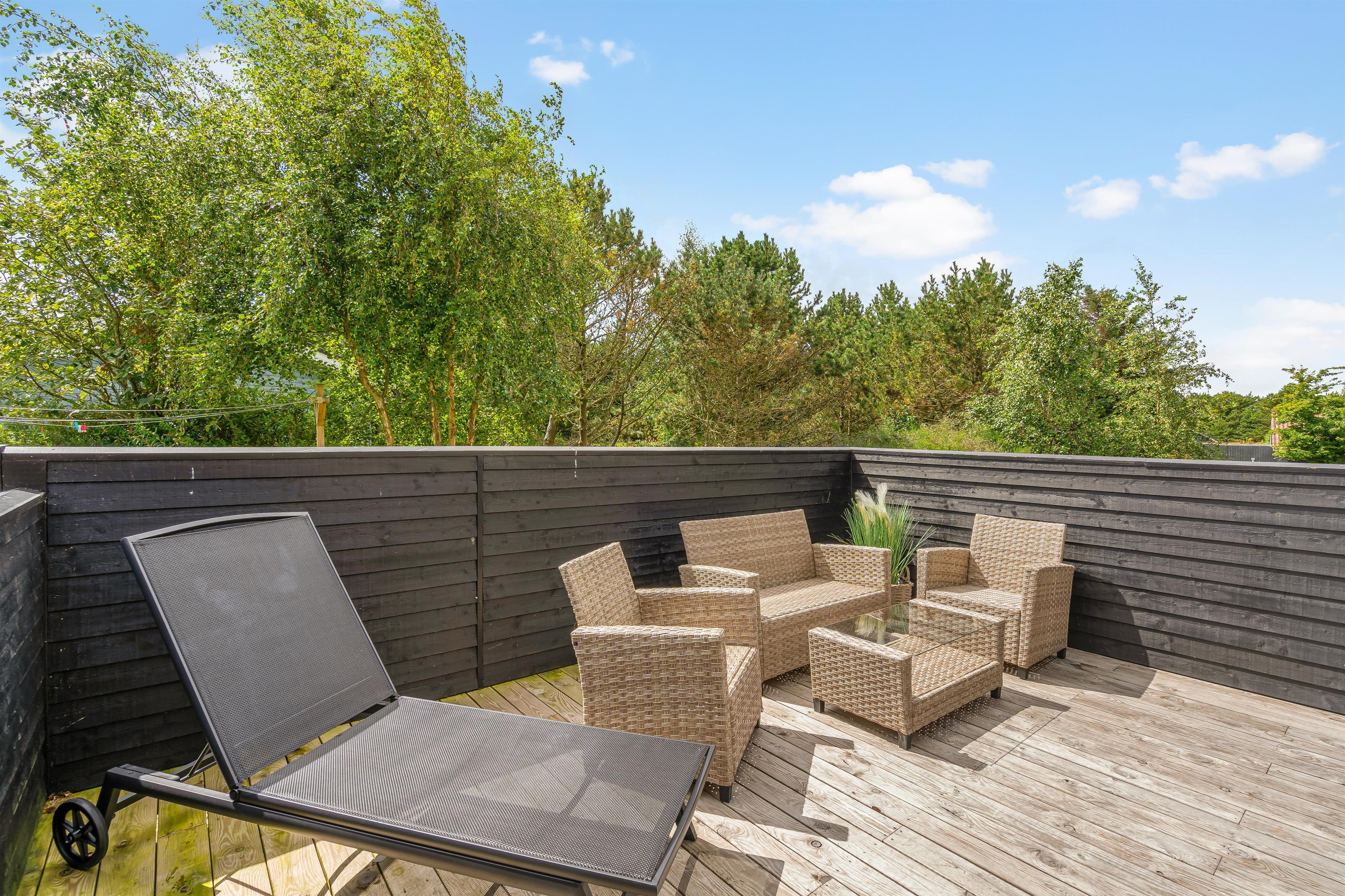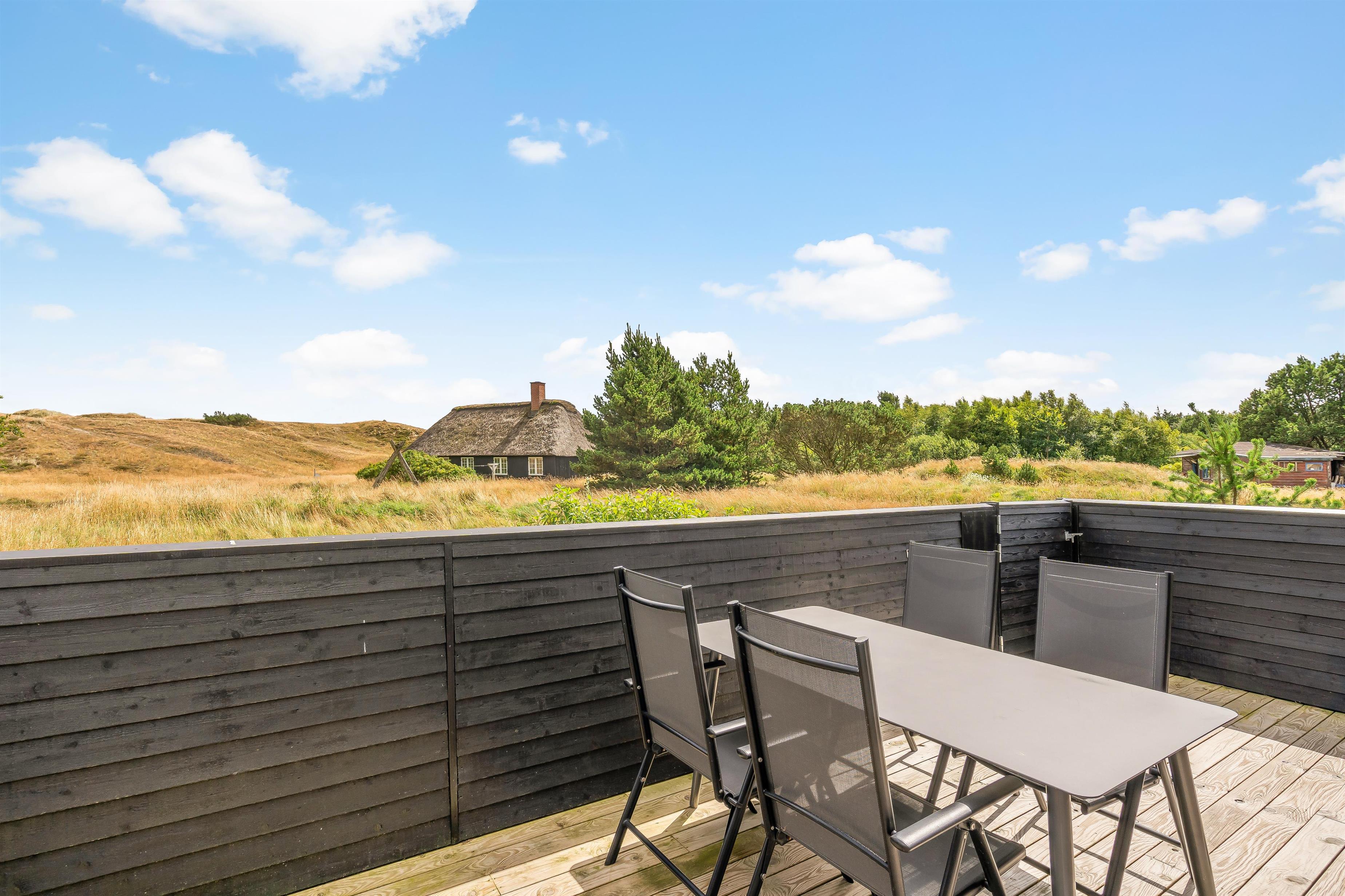 Med udgang fra køkkenet, har I den østvendte terrasse – det perfekte sted at indtage morgenkaffen. Herfra har I også en fantastisk udsigt til det bagvedliggende klitlandskab.