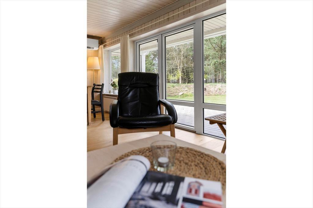 Selv udelivet kan nydes i flere niveauer: På førstesalen kan I skue ud over de naturskønne omgivelser fra de to altaner, og ellers kan I slå jer ned på terrassemiljøet, der breder sig om flere sider af huset. En del af terrassen er overdækket, så selvom duggen falder, kan I nemt blive siddende i den milde sommeraften. Den 3138 m2 store grund er flot anlagt, og mens plankeværk og træer sørger for privatliv, er der samtidig godt med plads til at boltre sig på de åbne græsarealer.