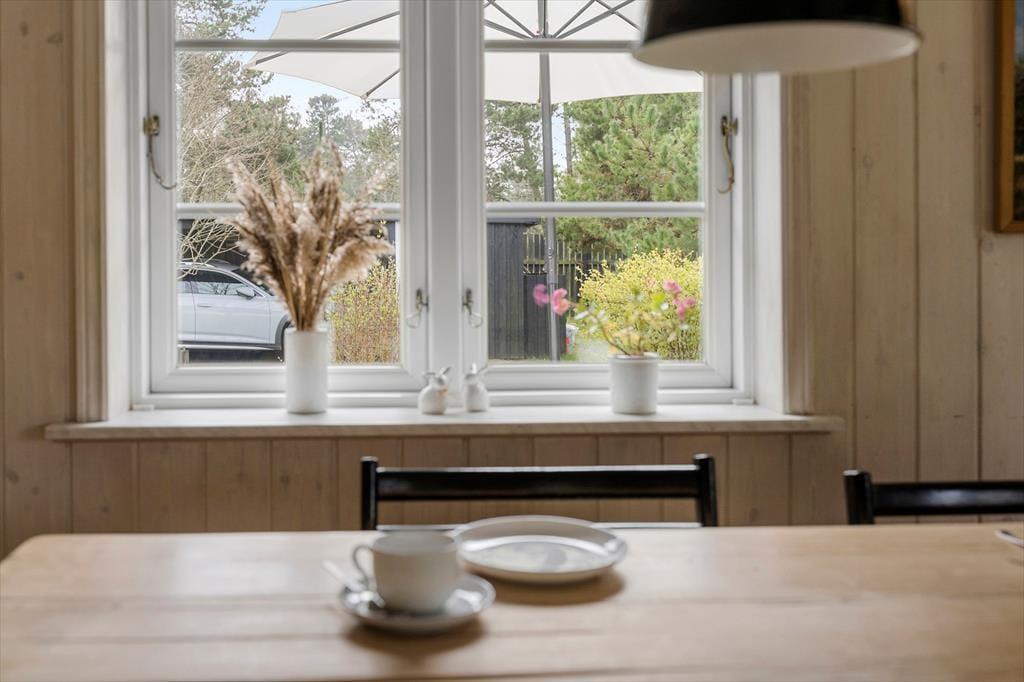 Originale detaljer og moderne bekvemmeligheder er flot forenet i dette nænsomt renoverede sommerhus, der ligger smukt placeret i det eftertragtede Sønderstrand-område.