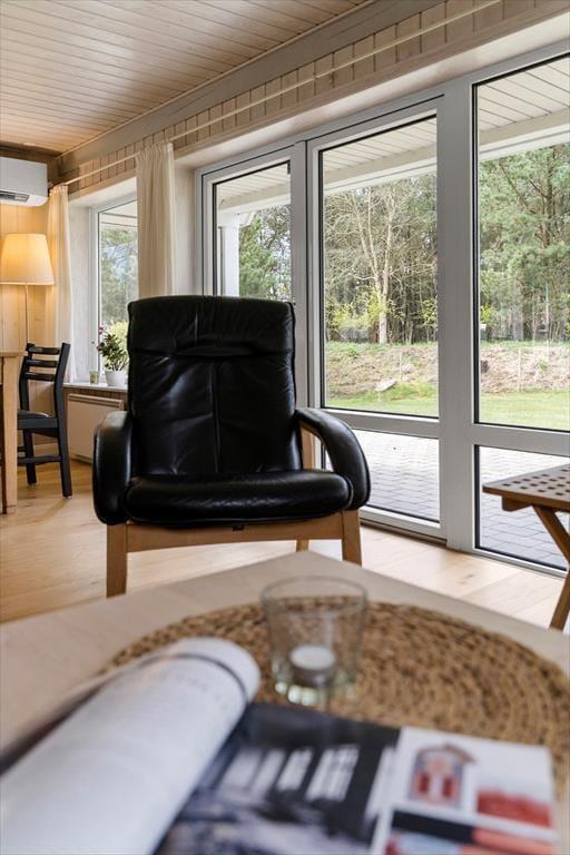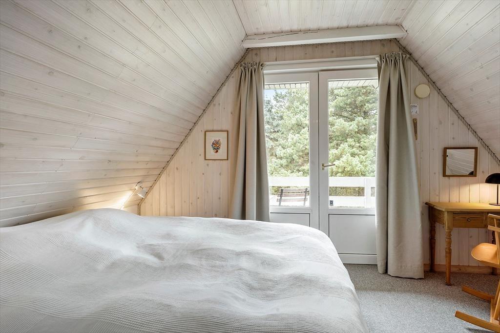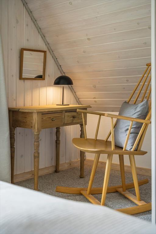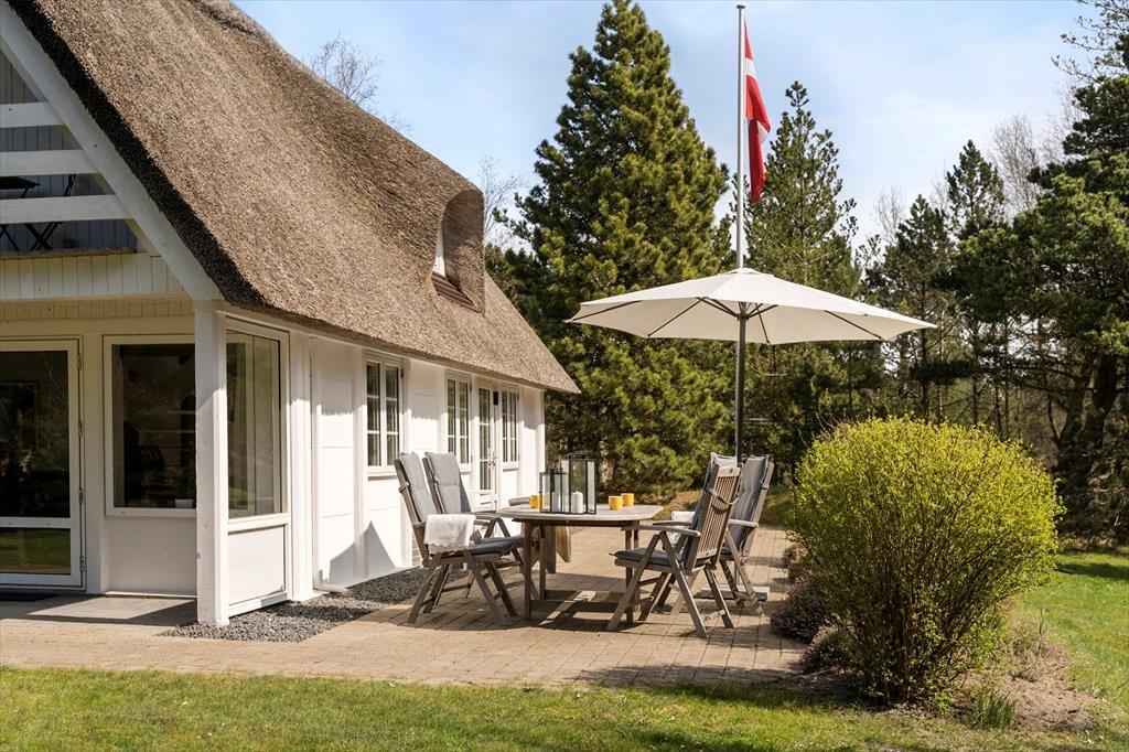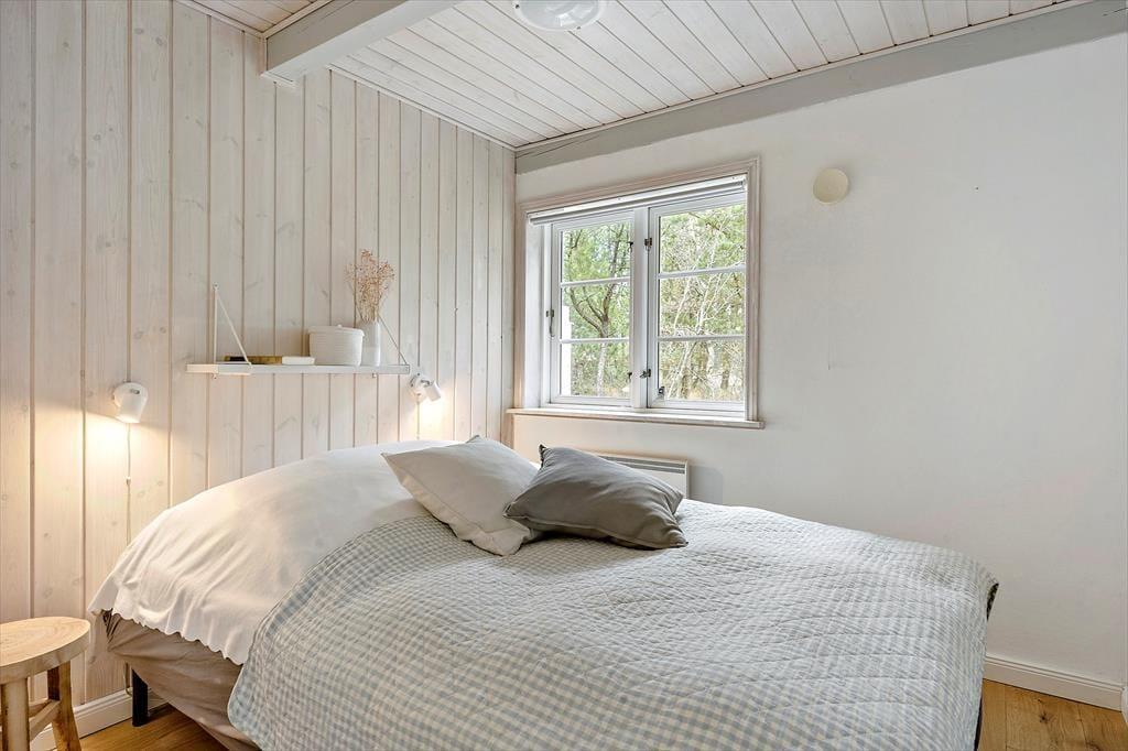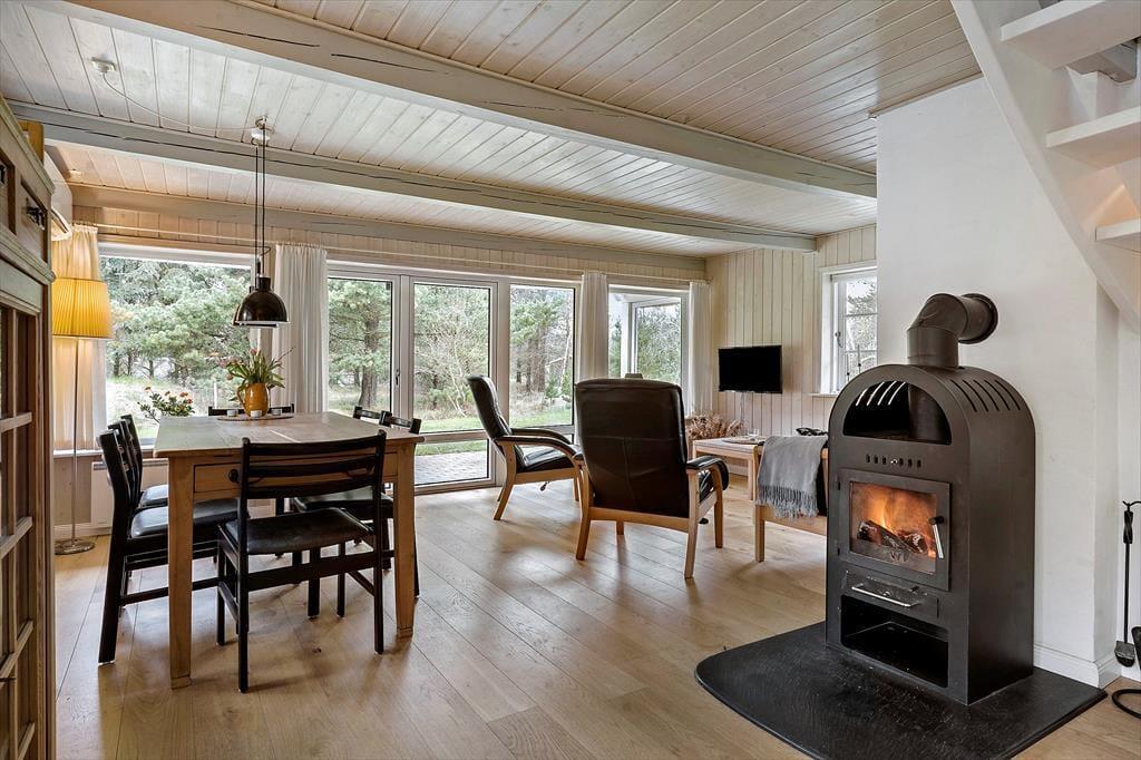 Det stråtækte sommerhus er gennem årene blevet renoveret løbende, og hele vejen igennem har der været øje for at bevare husets sjæl og charme. Derfor er der eksempelvis stadig synlige loftsbjælker i den stemningsfulde stue – samtidig med at rummet er moderniseret med varmepumpe, en veludstyret køkkenafdeling og pænt møblement. Når I slapper af i sofaen nær brændeovnen, kan I nyde udsigten til haven, og måske ser I endda et rådyr eller en fasan, der kommer trippende forbi i det grønne. I stueplan hører et soveværelse og et badeværelse også med til planløsningen, mens førstesalen byder på yderligere to soveværelser og et toilet.