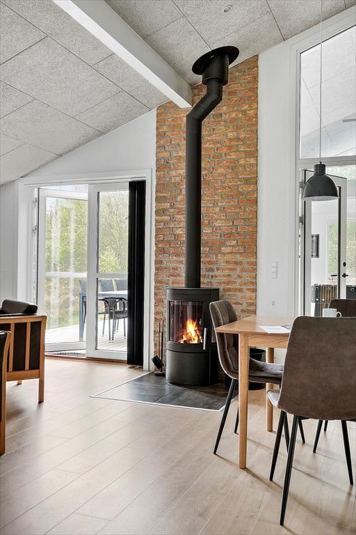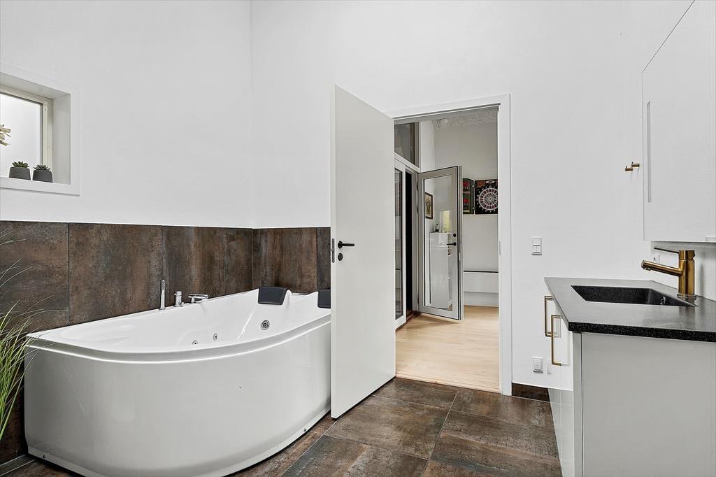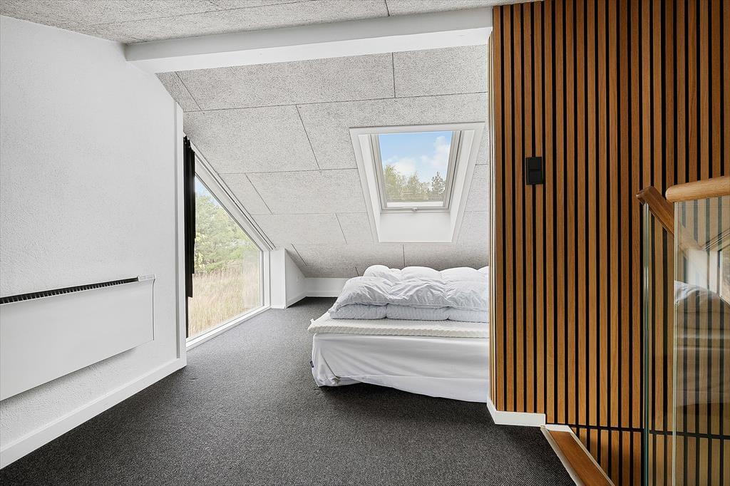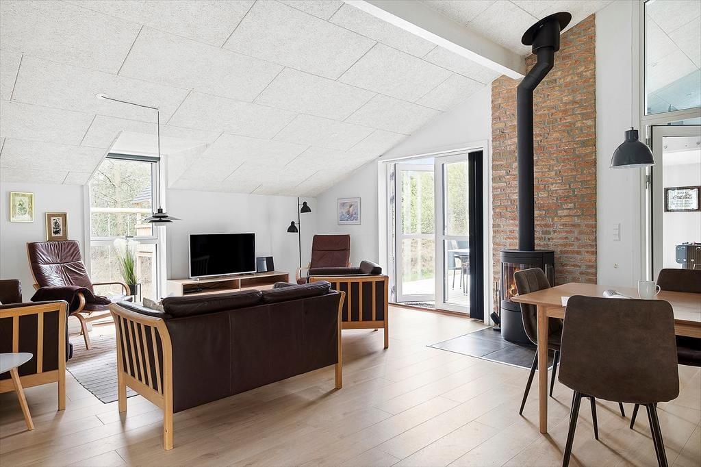 I kommer til at tilbringe dagene i lyse og rummelige rammer i det flotte sommerhus, der er opført i 2021 og måler 138 m². Indretningen er både stilfuld og superfunktionel, og med fire gode soveværelser og en hems med ekstra madrasser kan I nemt samles to børnefamilier, en flok gode venner eller en familie i flere generationer. Der er desuden to badeværelser i huset, hvoraf det største er et rigtigt wellnessrum med både spabad og sauna. Hvis I elsker at spille bordfodbold eller airhockey, kan I få mange timer til at gå i aktivitetsrummet, og i det elegant indrettede opholdsrum er der rig mulighed for at kræse om maden i det åbne køkken og for at hygge sig i sofaarrangementet nær brændeovnen.