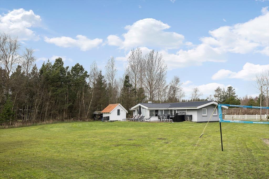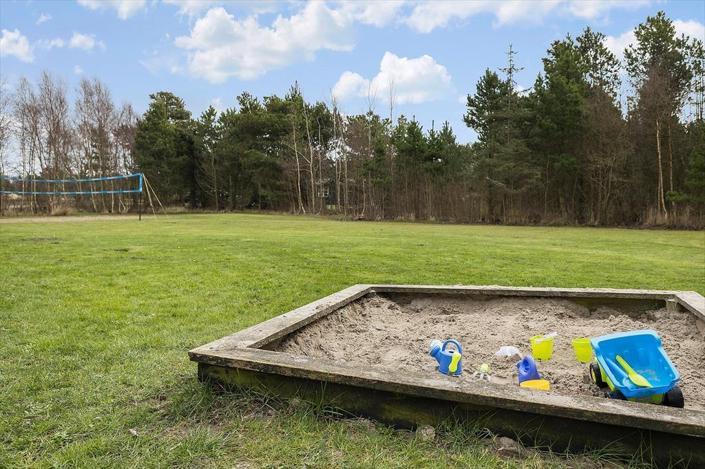 På den 2800 m2 store naturgrund er der masser af plads til at lege, spille bold og bare nyde ferielivet i ro og mag. Sidstnævnte kan passende foregå på det dejlige terrassemiljø, hvor du kan finde en solrig opholdsplads dagen lang – og hvis det er skygge, du trænger til, kan du slå parasollen op. Lige ved terrassen er der en sandkasse til de yngste, og på den anden side af huset kan de hygge sig med at gynge, klatre og rutsje i legestativet. Der er både volleybane og fodboldmål til de sportsglade familiemedlemmer, og hvis I hellere vil ud i naturen, kan I snøre løbeskoene eller finde cyklerne frem, inden I begiver jer ud i Rømøs smukke landskab.