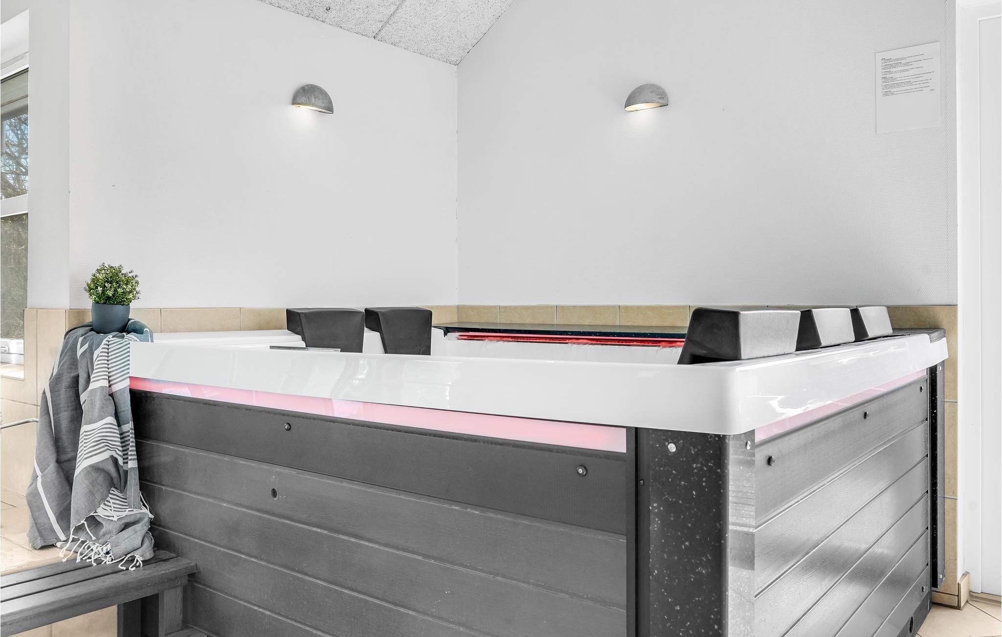 I naturskønne omgivelser og tæt ved vandet ligger dette meget rummelige feriehus på en stor, lukket naturgrund. I dette dejlige område vil I finde ro og afslapning. Alle soveværelser er forskellige, og de er navngivet, således I nemt kan finde jeres værelse, hvor I vil føle jer hjemme. Den dejlige opholdsstue ligger i åben forbindelse med det veludstyrede køkken, der bl.a. indeholder to køleskabe og et stort spisebord med 22 pladser, der er forskellige hyggekroge med sofaer, hvor I kan hyggesnakke og eventuelt se tv. Poolrummet byder på en 24 m² stor swimmingpool, et 5-pers. spabad, hvor I kan nyde herlig undervandsmassage og en stor sauna med god plads til flere personer. Den lækre, sydvendte terrasse er udstyret med dejlige havemøbler og en stor grill. Endvidere har I egen beachvolleybane og til børnene er der legeredskaber.