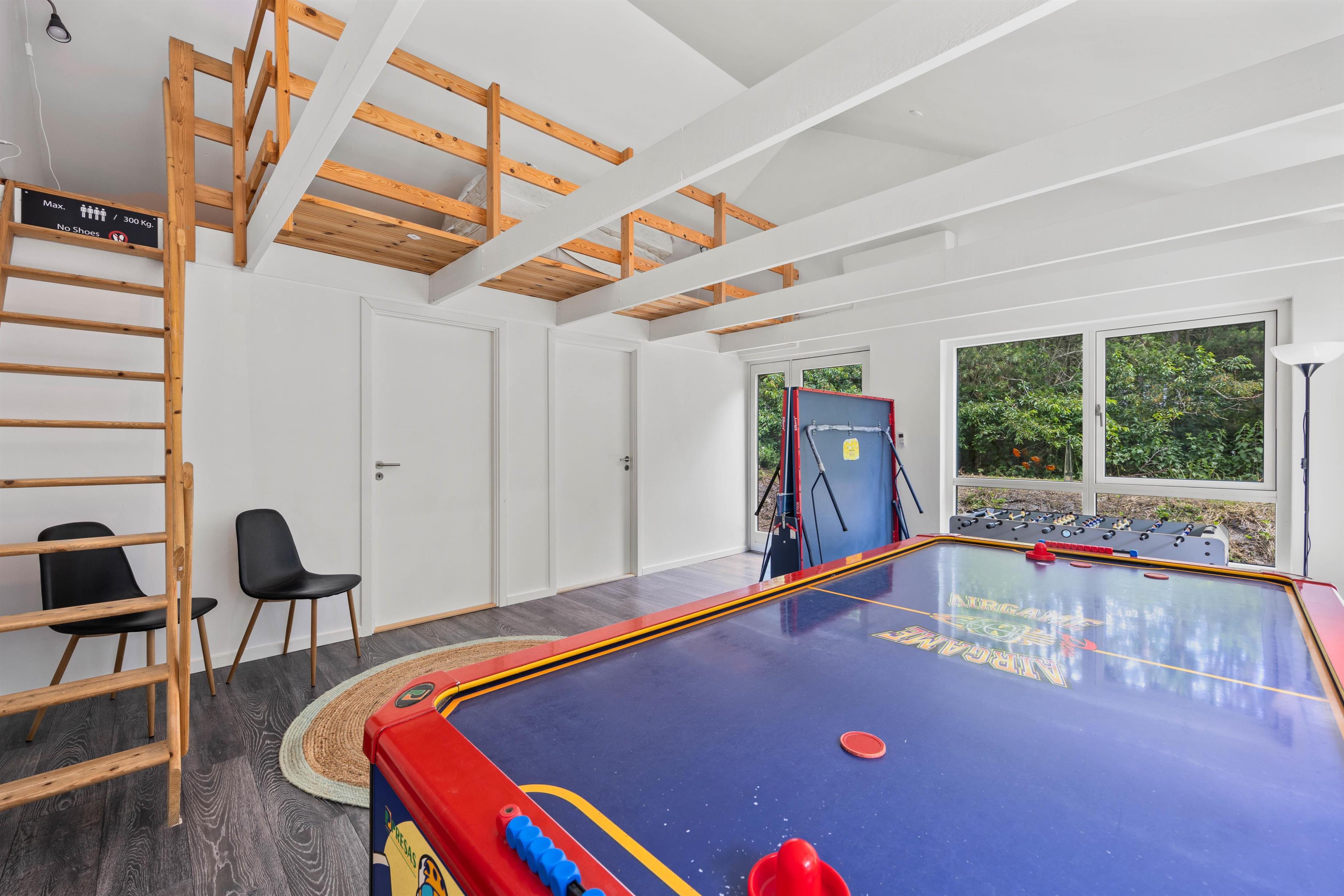 Der er masser af aktiviteter både indendørs og udendørs til at holde alle underholdt. Udfordr hinanden i en omgang air hockey eller bordtennis i aktivitetsrummet, eller brug en af husets Chromecast til at streame jeres yndlingsfilm og serier. Naturgrunden og plænegrunden tilbyder desuden perfekte rammer for udendørsspil og leg med hunden, og til de aktive børn er der både legetårn, gynger og trampolin.