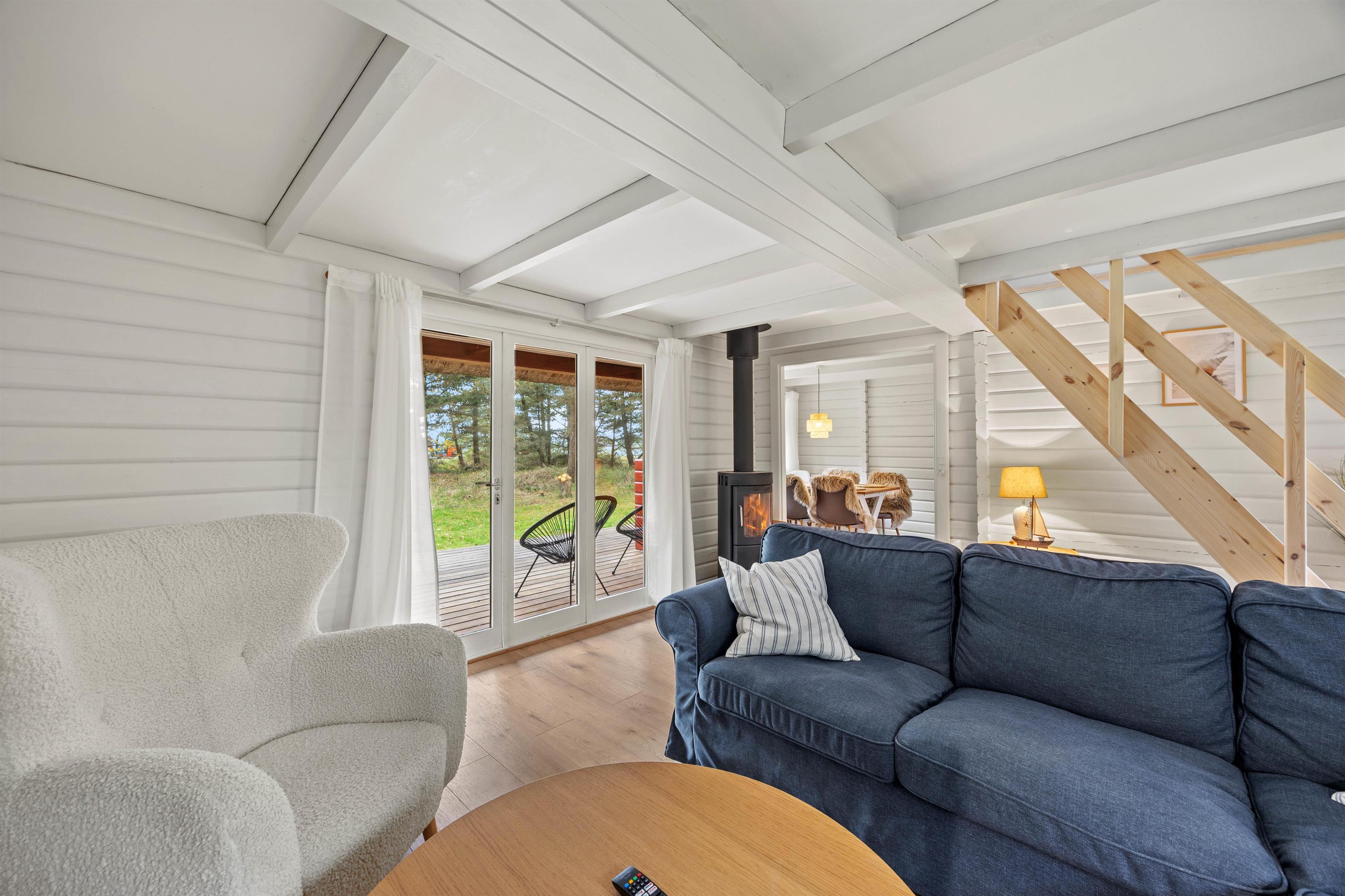 Indenfor finder I et velindrettet sommerhus, der kan rumme op til 6 personer, fordelt på 3 soverum med komfortable dobbeltsenge. Det fuldt udstyrede køkken har blandt andet en moderne opvaskemaskine, så I nemt kan håndtere dagens praktiske gøremål. På de køligere aftener kan I nyde atmosfæren skabt af brændeovnens knitren og lune jer ved hjælp af en effektiv luft til luft varmepumpe.