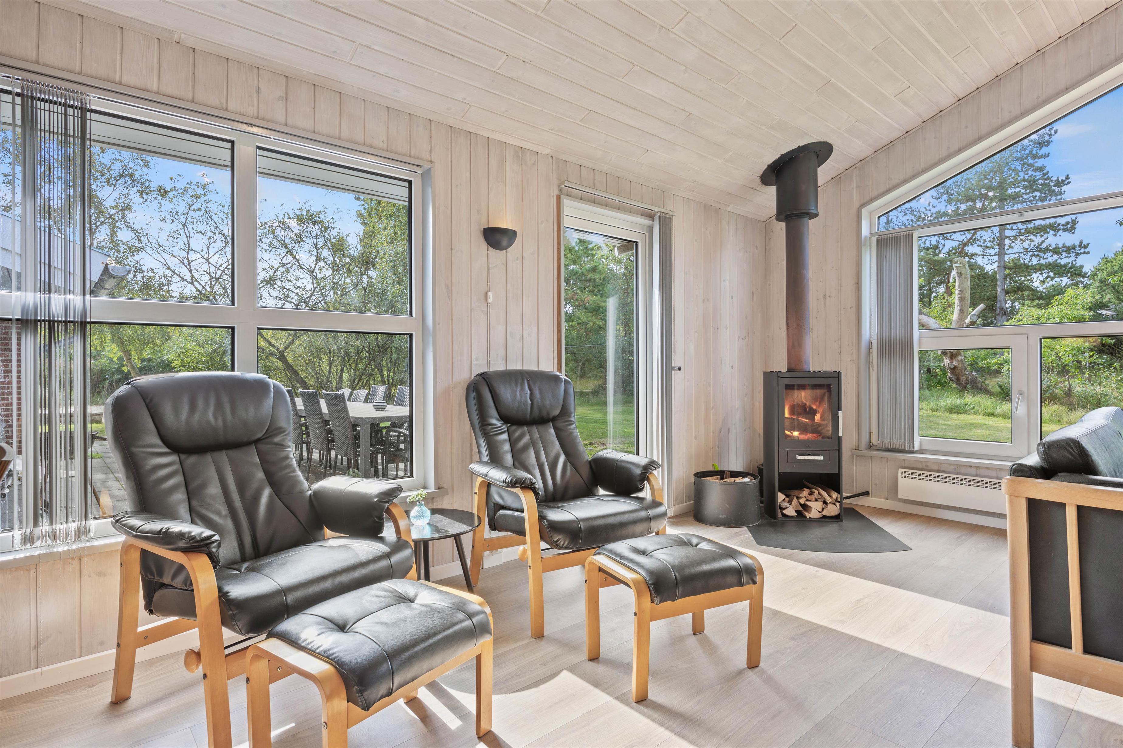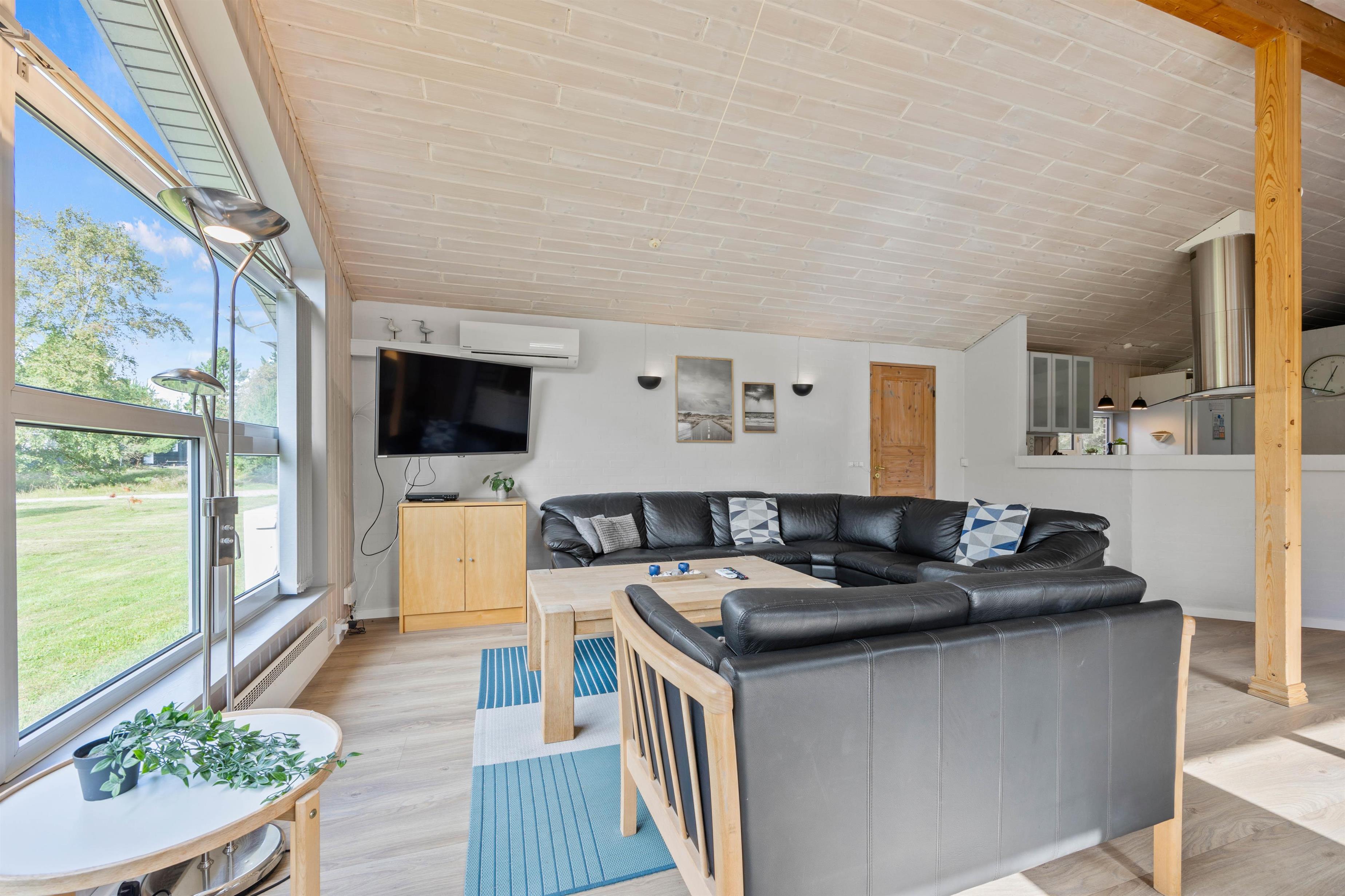 Sommerhusets stue indbyder til nogle rigtig hyggelige aftner. Spil et godt brætspil, imens lyden af brændeovnen knitrer i baggrunden og nyd den gode kvalitetstid med hinanden. Her I stuen finder I også en varmepumpe