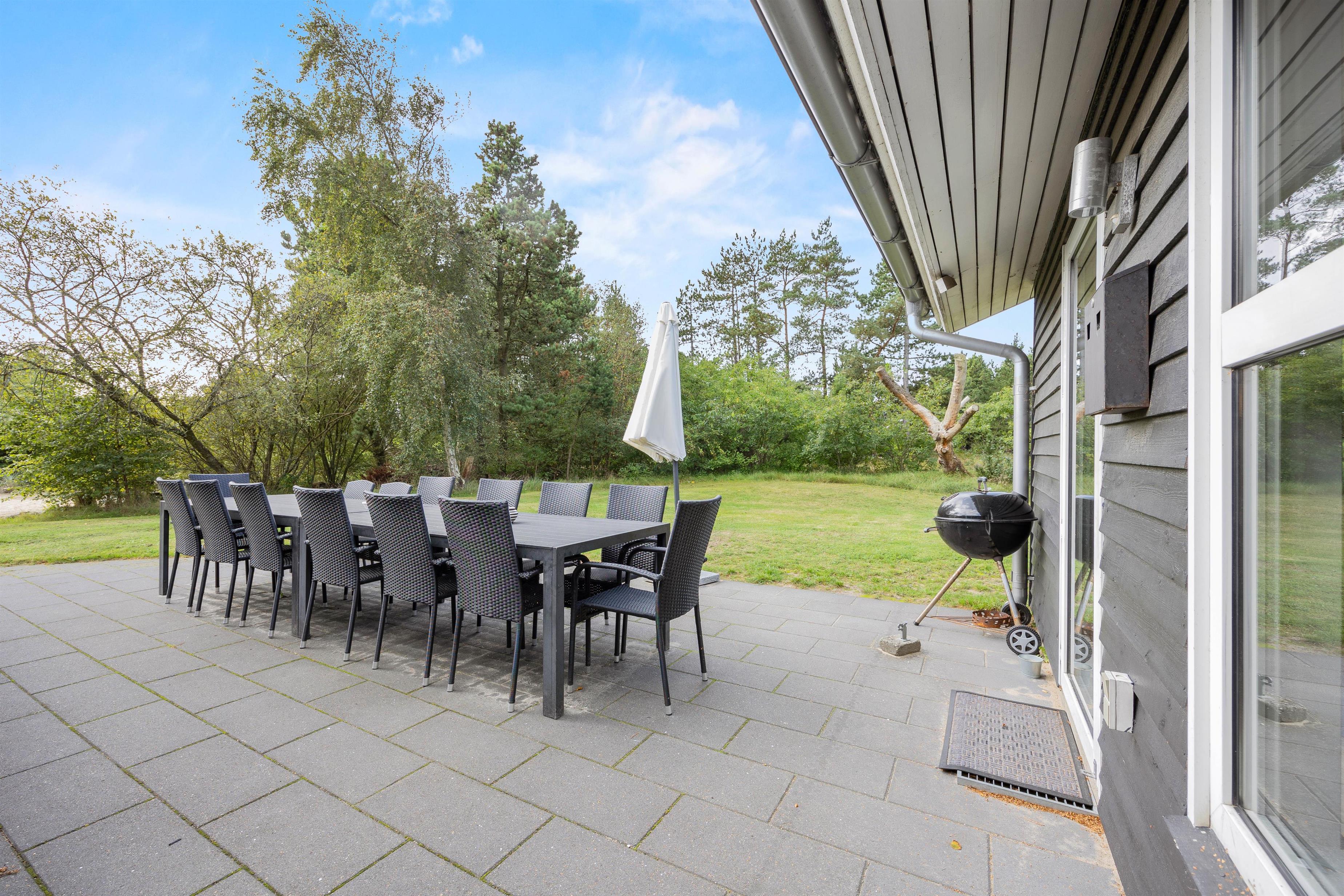 Når I trænger til frisk luft, kan I opholde jer i sommerhusets have eller på den åbne terrasse. På terrassen finder i både solvogne og havemøbler, så hvis vejret bliver lunt, kunne I udnytte det til en god gang udespisning med grillmad fra feriehusets grill.